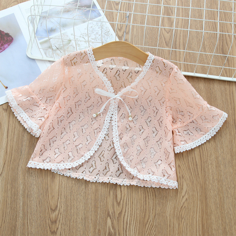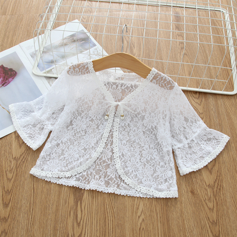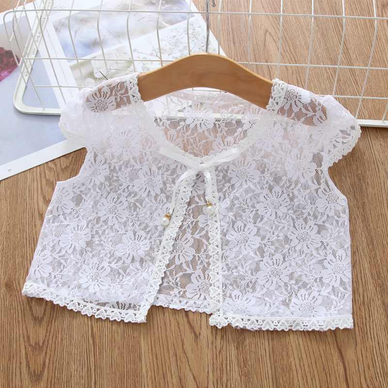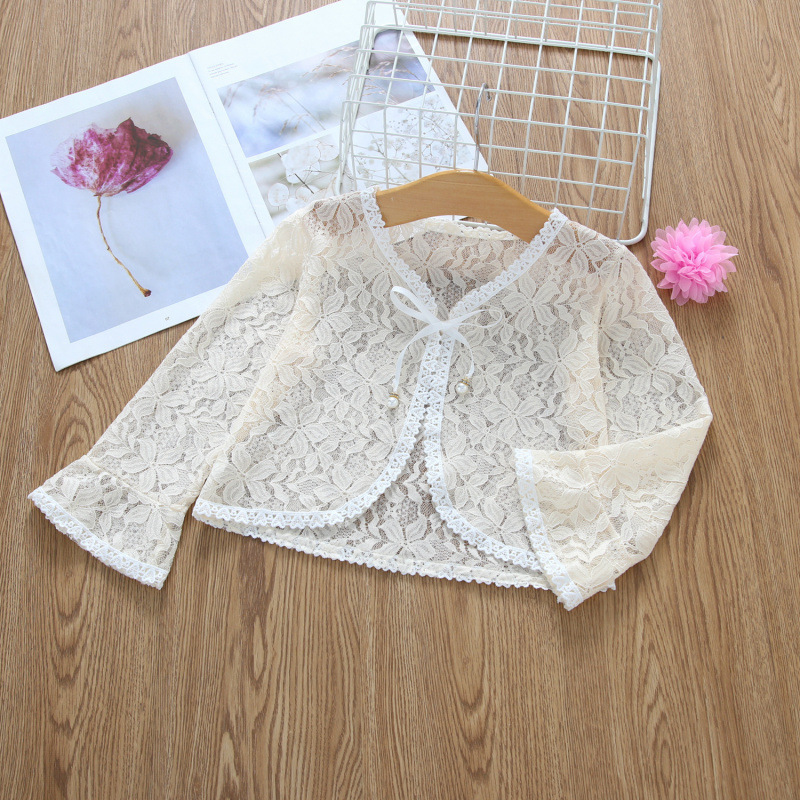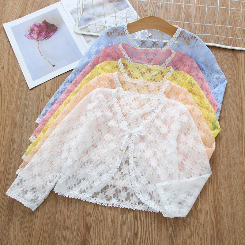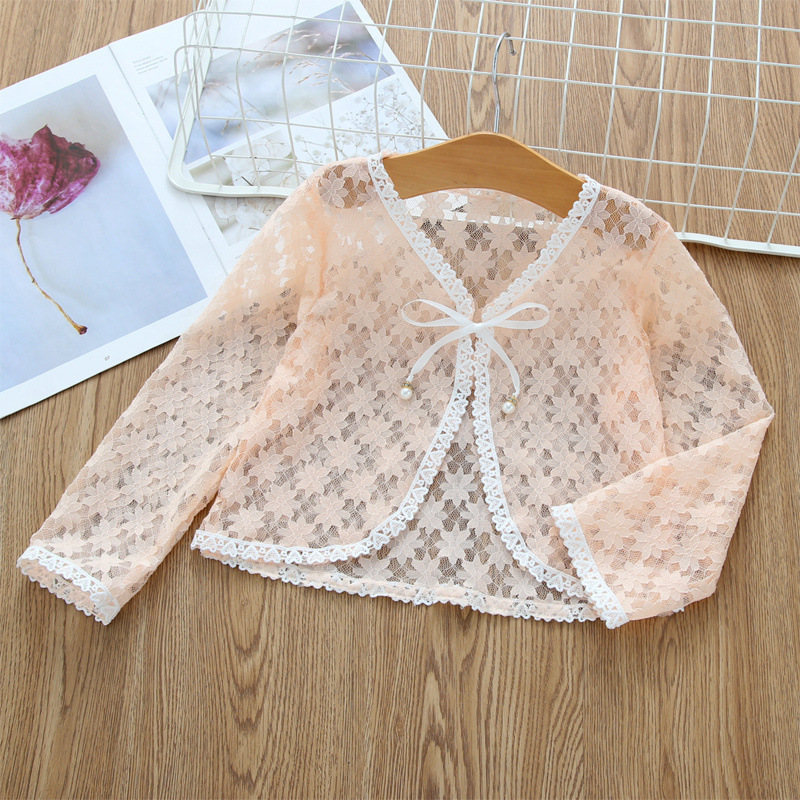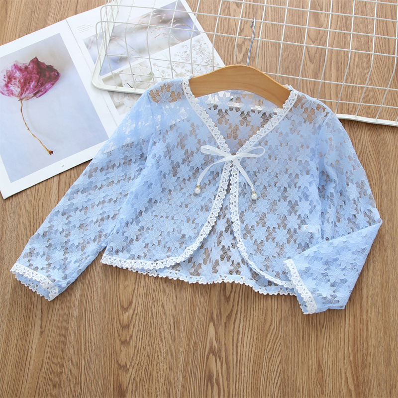아동용 코트 가디건, 여아용 레이스 중공 아우터, 숄, 소형 조끼, 여아용 긴팔 가디건, 에어컨 셔츠스토어 가기