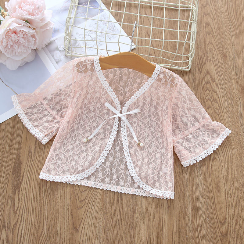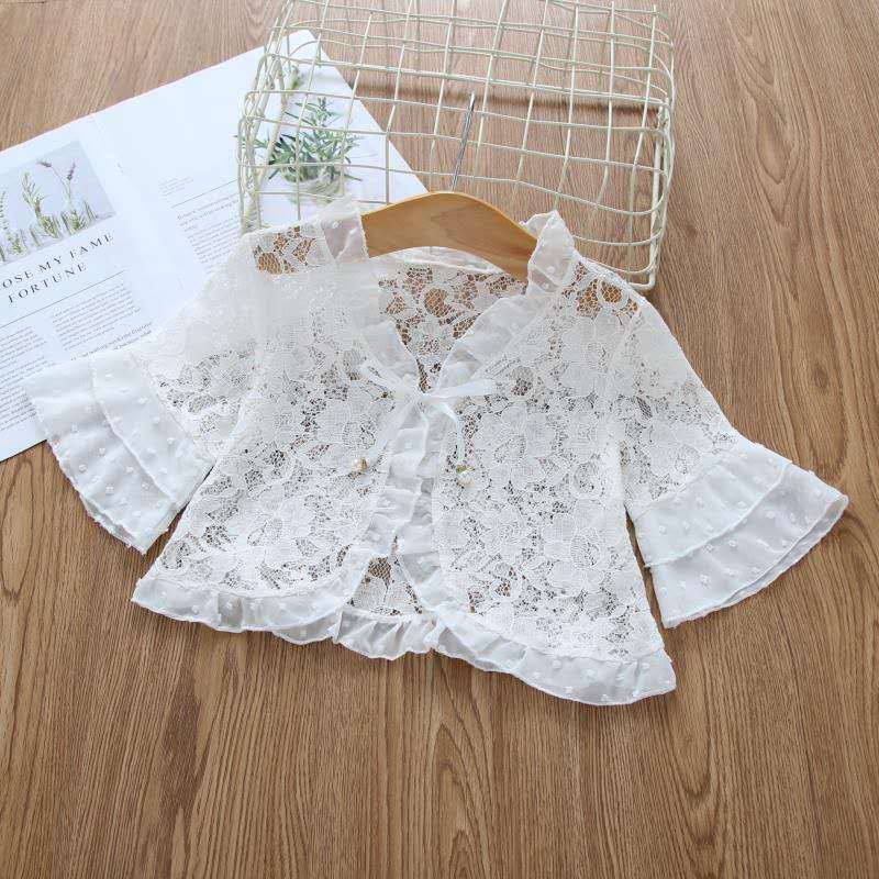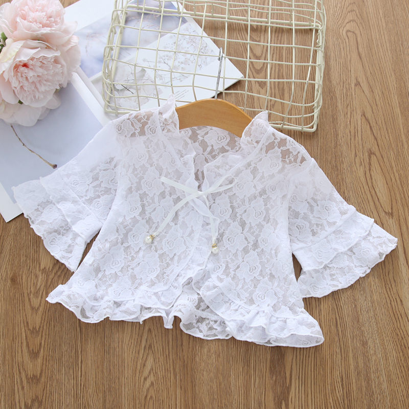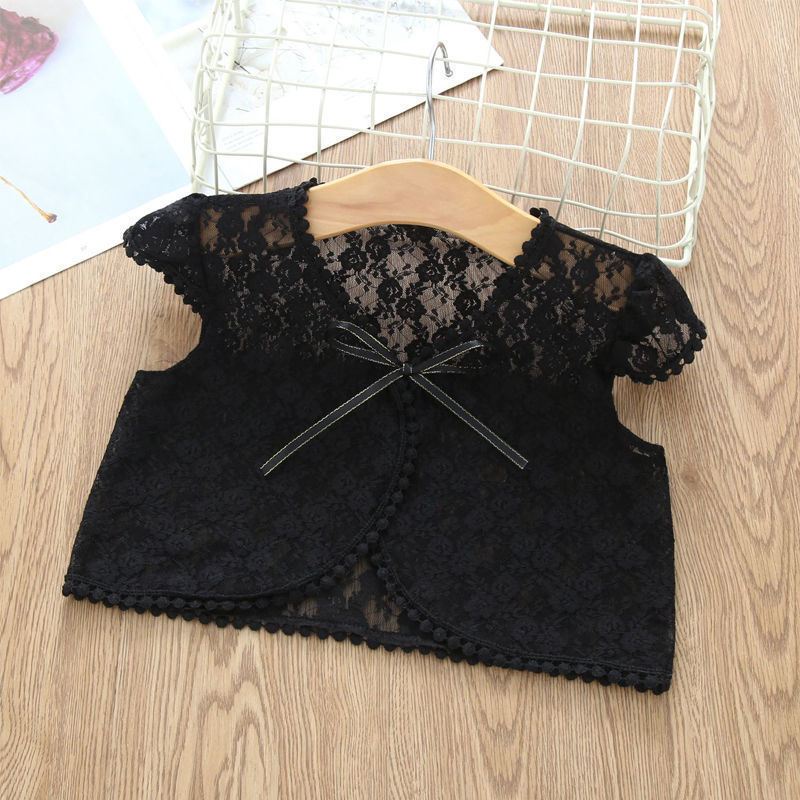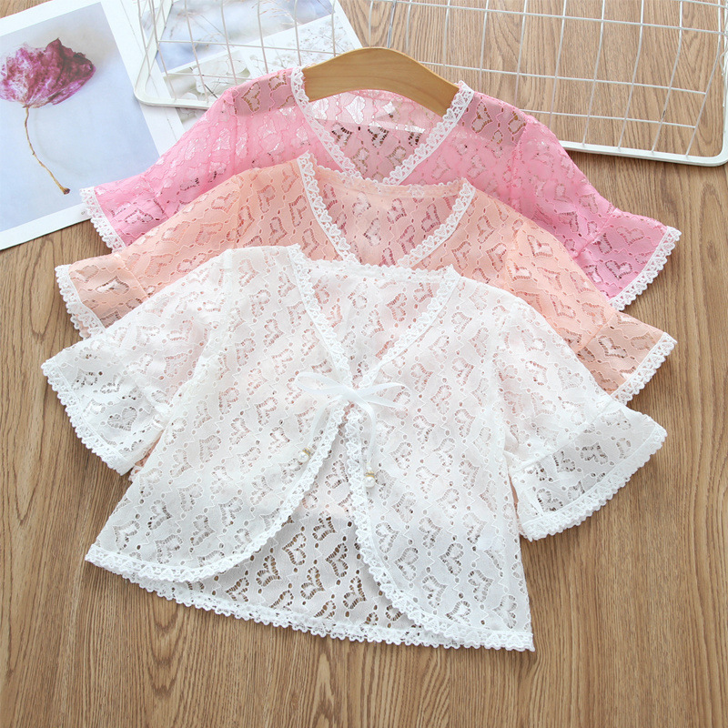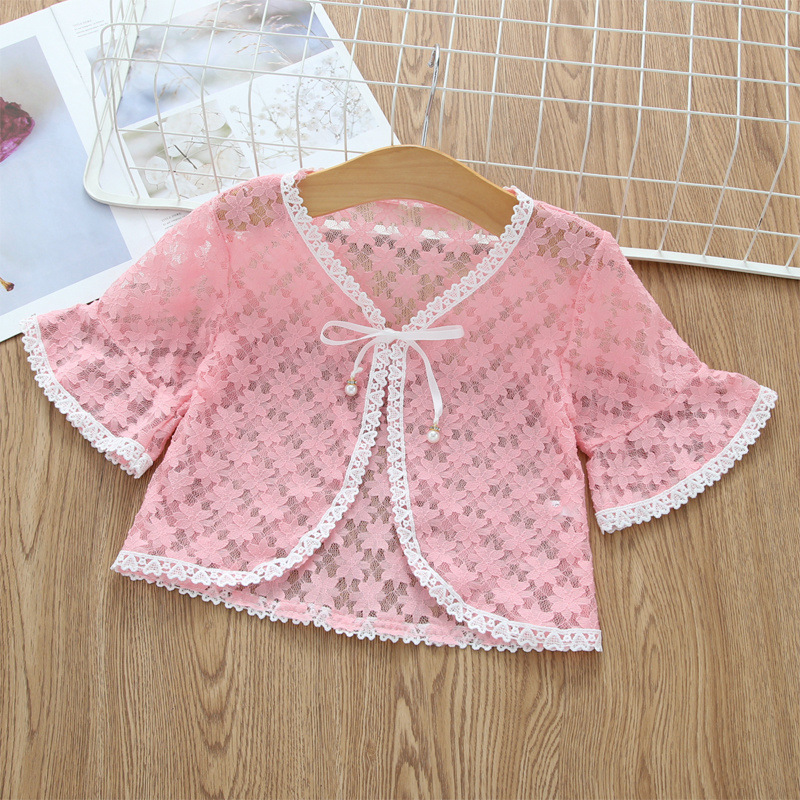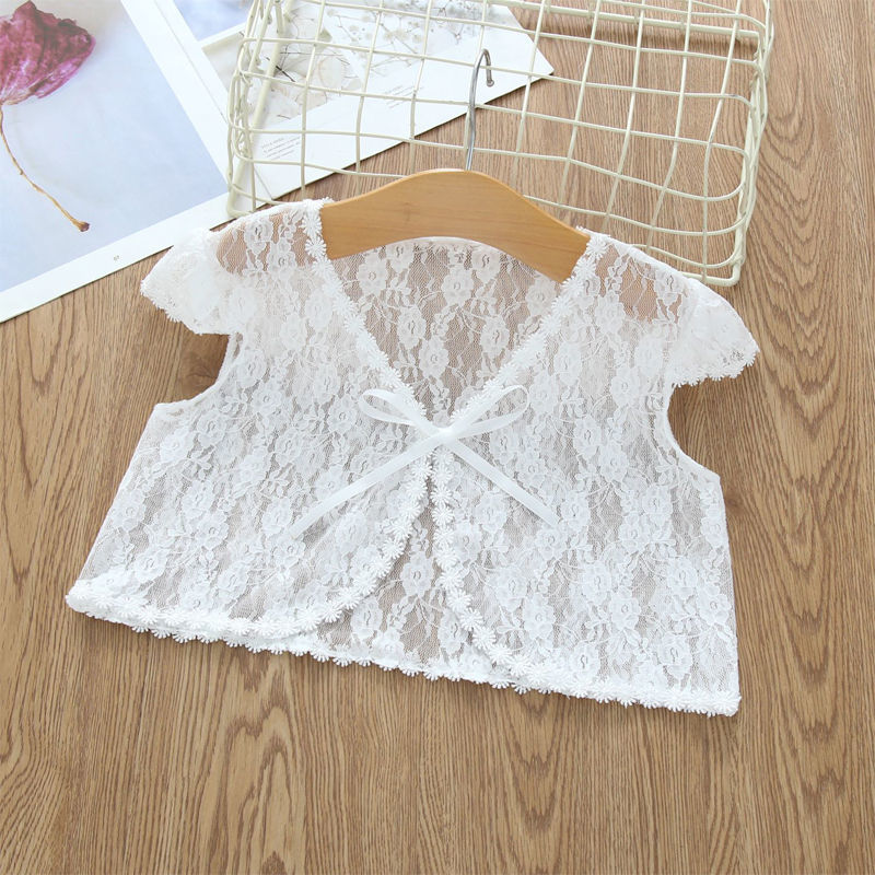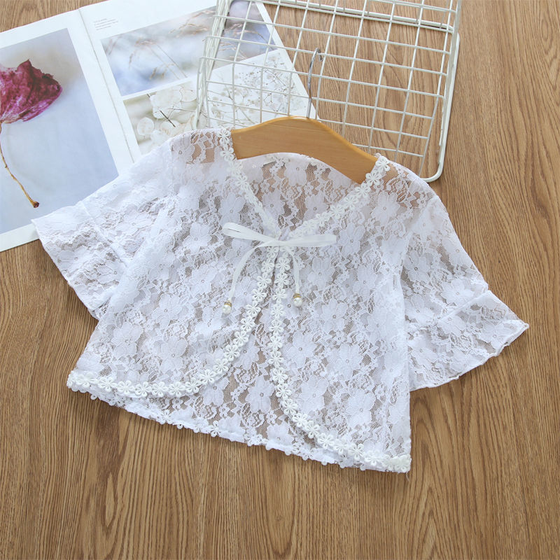 아동용 코트 가디건, 여아용 레이스 중공 아우터, 숄, 소형 조끼, 여아용 긴팔 가디건, 에어컨 셔츠스토어 가기