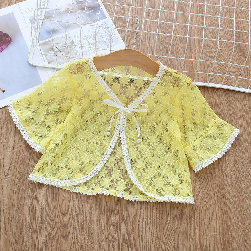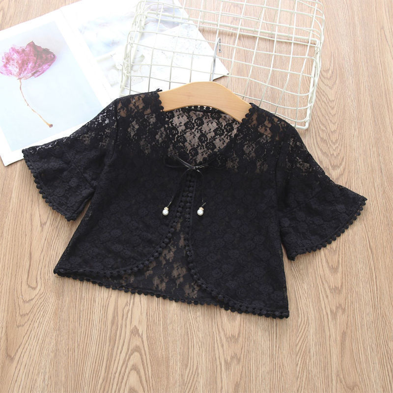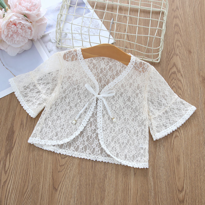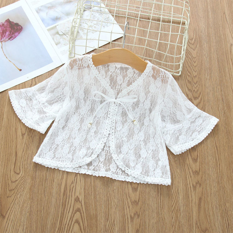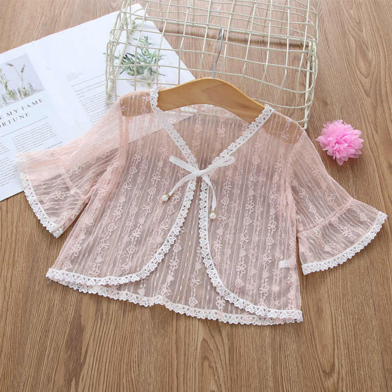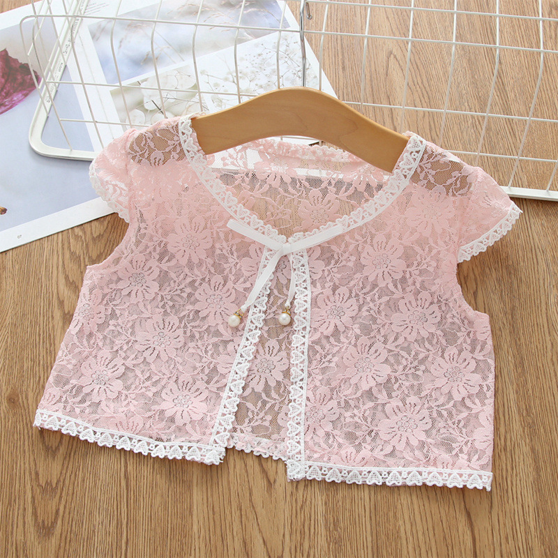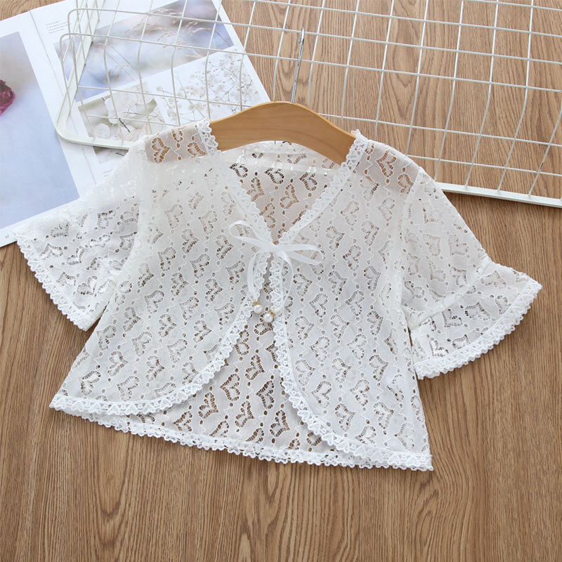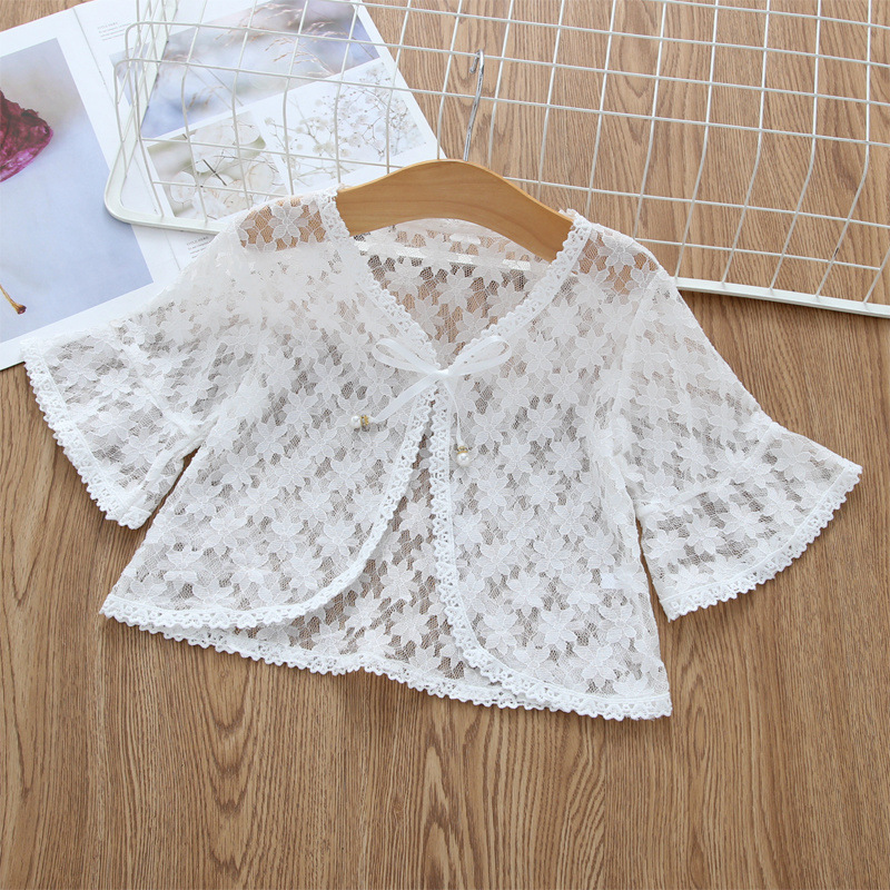아동용 코트 가디건, 여아용 레이스 중공 아우터, 숄, 소형 조끼, 여아용 긴팔 가디건, 에어컨 셔츠스토어 가기