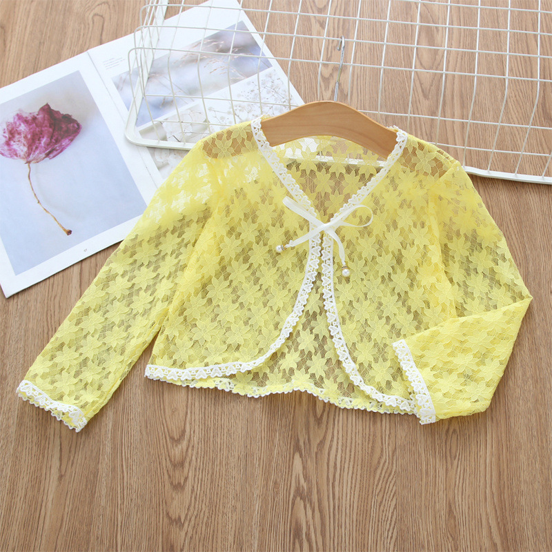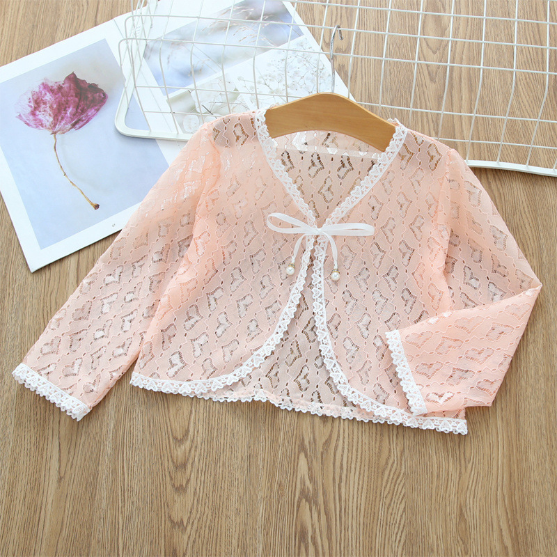 아동용 코트 가디건, 여아용 레이스 중공 아우터, 숄, 소형 조끼, 여아용 긴팔 가디건, 에어컨 셔츠
