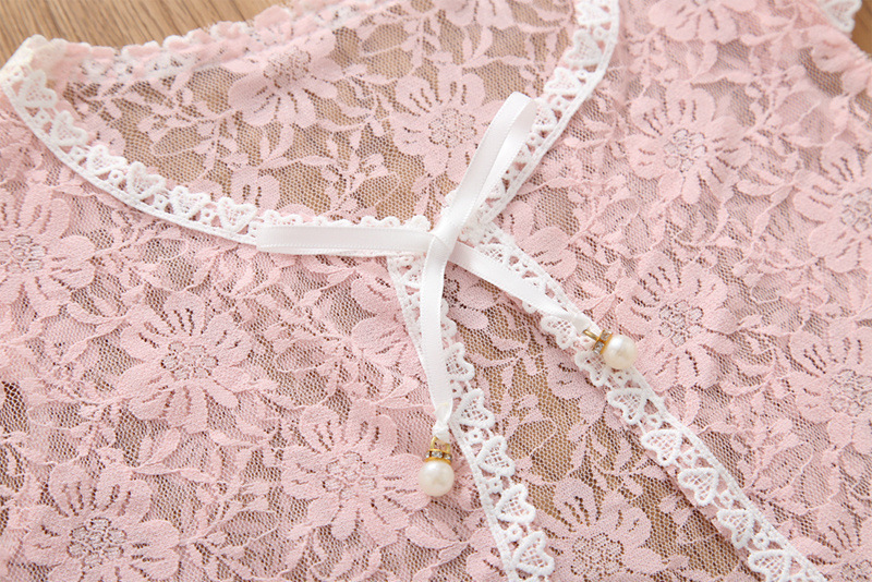 • 얇은 레이스 핑크색 긴소매