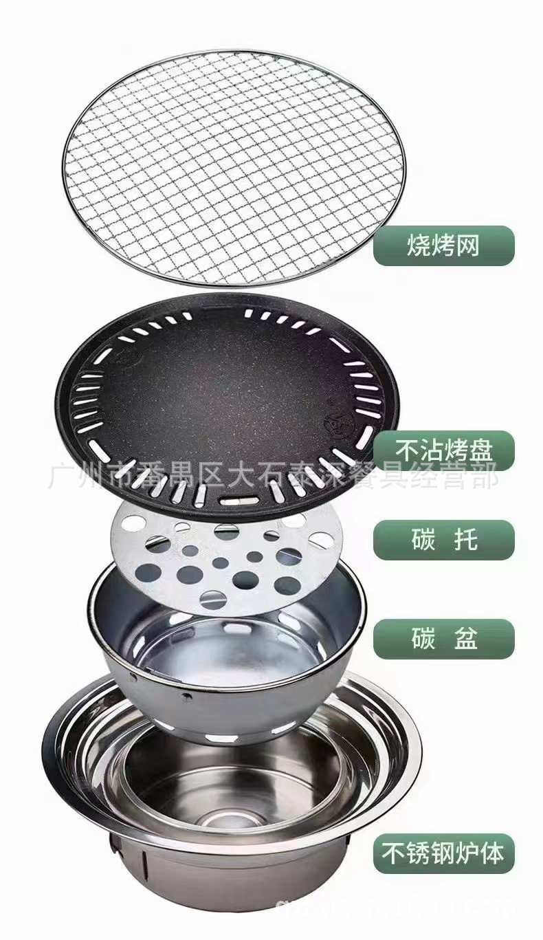 스테인레스 스틸 라운드 한국식 바베큐 스토브 그릴 그릴 팬 야외 상업용 숯스토어 가기