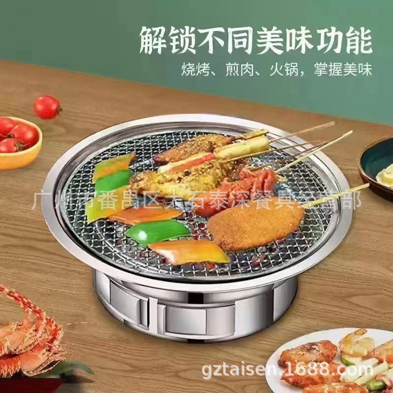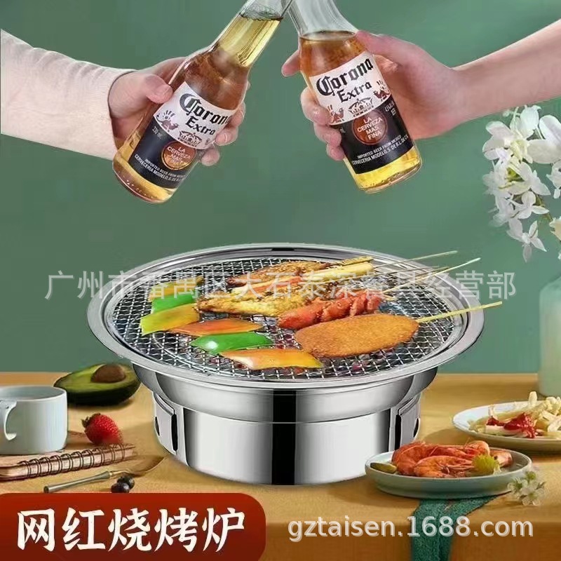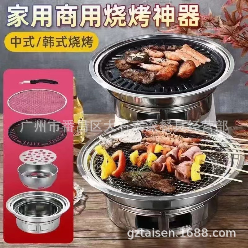 스테인레스 스틸 라운드 한국식 바베큐 스토브 그릴 그릴 팬 야외 상업용 숯