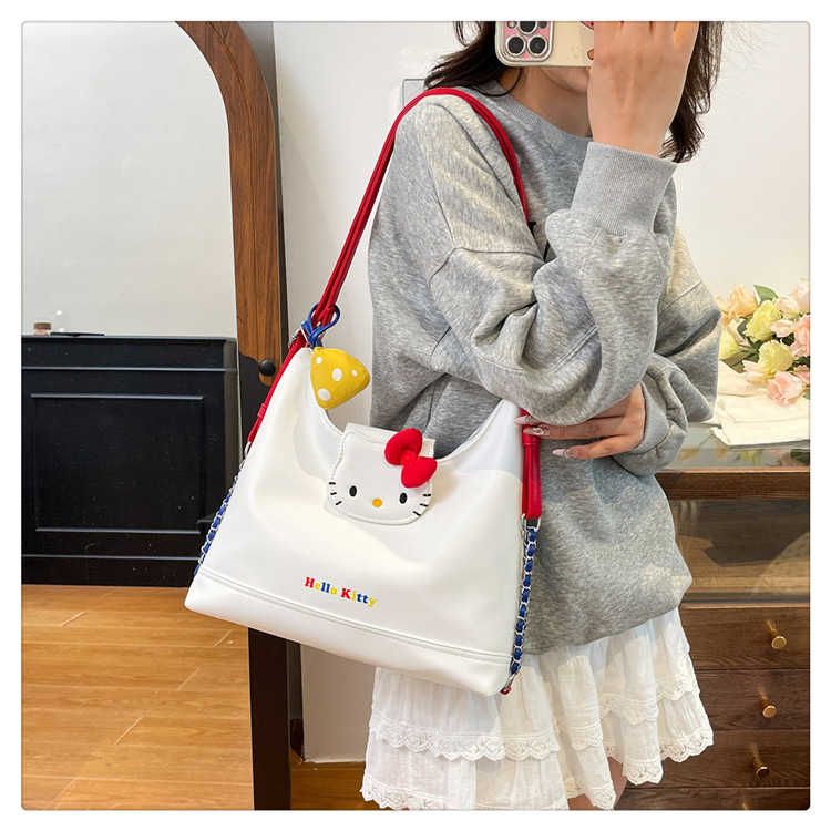 귀여운 키티 패션 대용량 다용도 토트 백 싱글 숄더 새로운 통근 다용도 헬로 키티 배낭