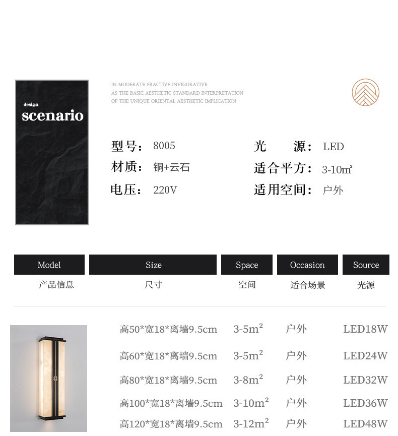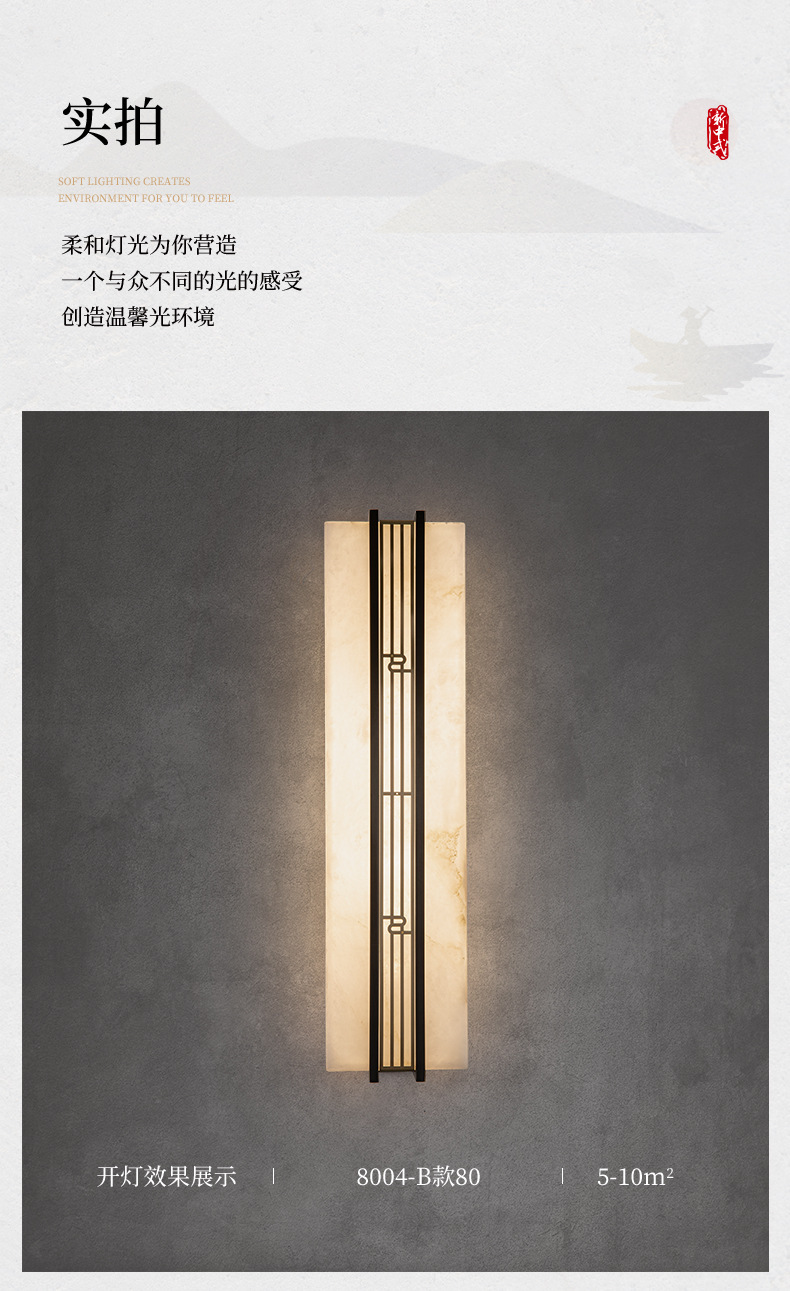 새로운 중국 스타일 야외 방수 전체 구리 대리석 벽 램프 빌라 외벽 게이트 안뜰 벽 스트립 램프 중국 스타일스토어 가기