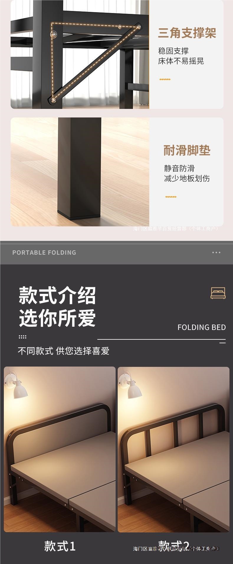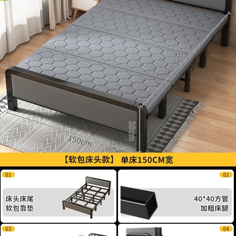 접이식 침대 성인 가정용 싱글 침대 휴대용 접이식 1.2m 임대 주택 강력하고 내구성이 뛰어난 단단한 철제 프레임 침대스토어 가기
