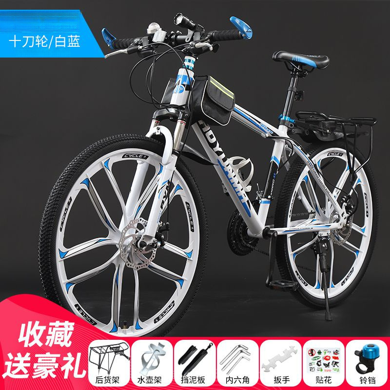 산악 자전거, 오프로드, 남성 및 여성 성인, 경량 로드 레이싱 디스크 브레이크, 가변 속도, 도시 충격 흡수 자전거 Lanqi스토어 가기