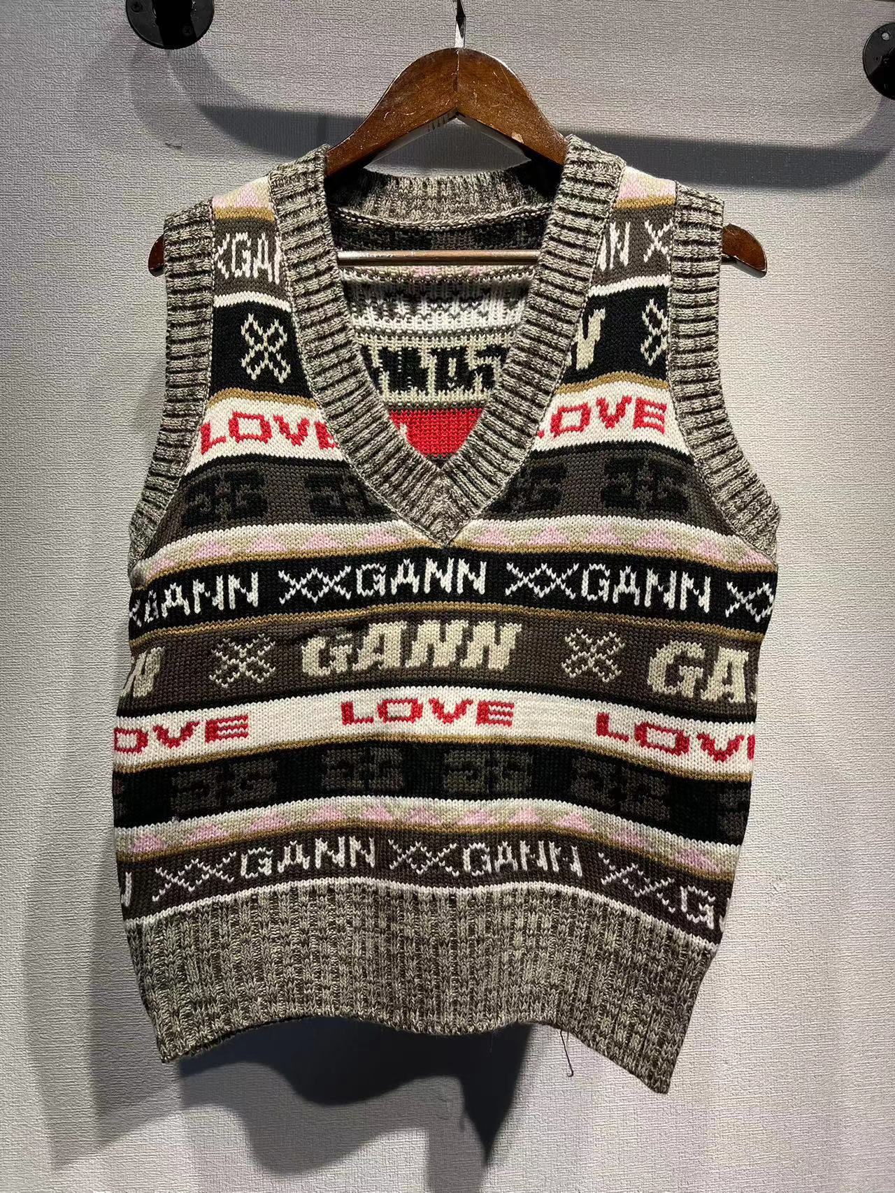 가을 겨울 신상 컬러블록 울 혼방 레터 자카드 니트 칼리지 스타일 조끼 여성용스토어 가기