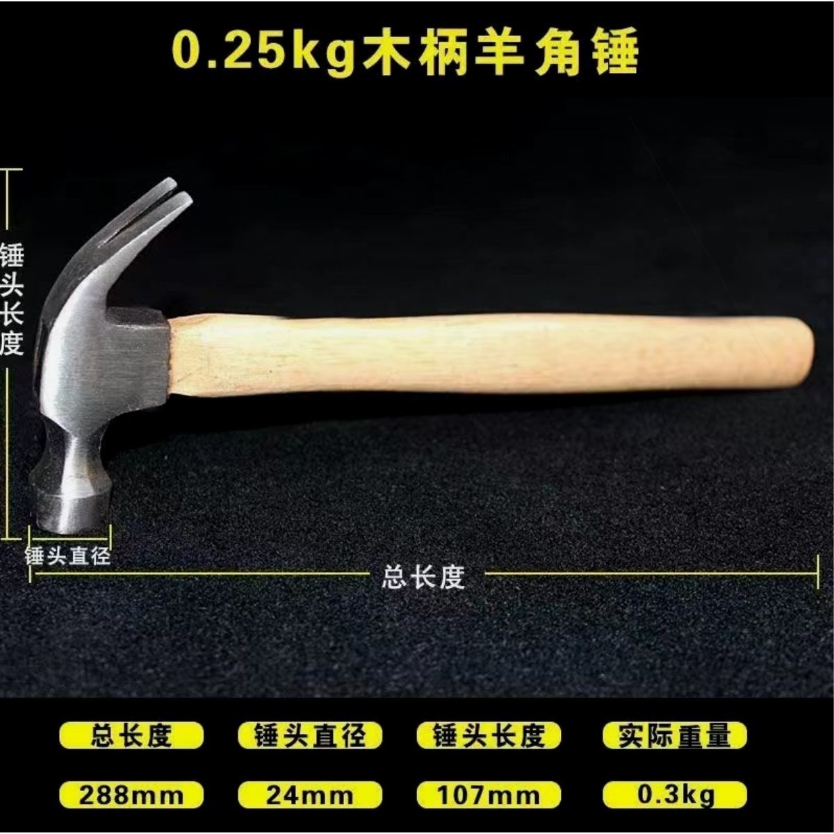 • 나무 손잡이가 달린 클로 해머 0.25kg