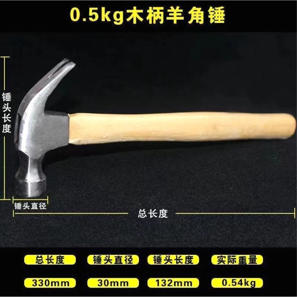 • 나무 손잡이가 달린 클로 해머 0.5kg
