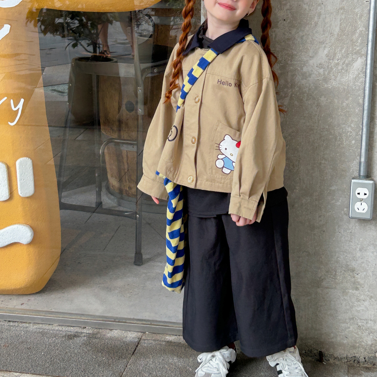 2025 새로운 가을 여아 한국 패션 다재다능한 스트레이트 바지 + 엉덩이 커튼 투피스 세트스토어 가기