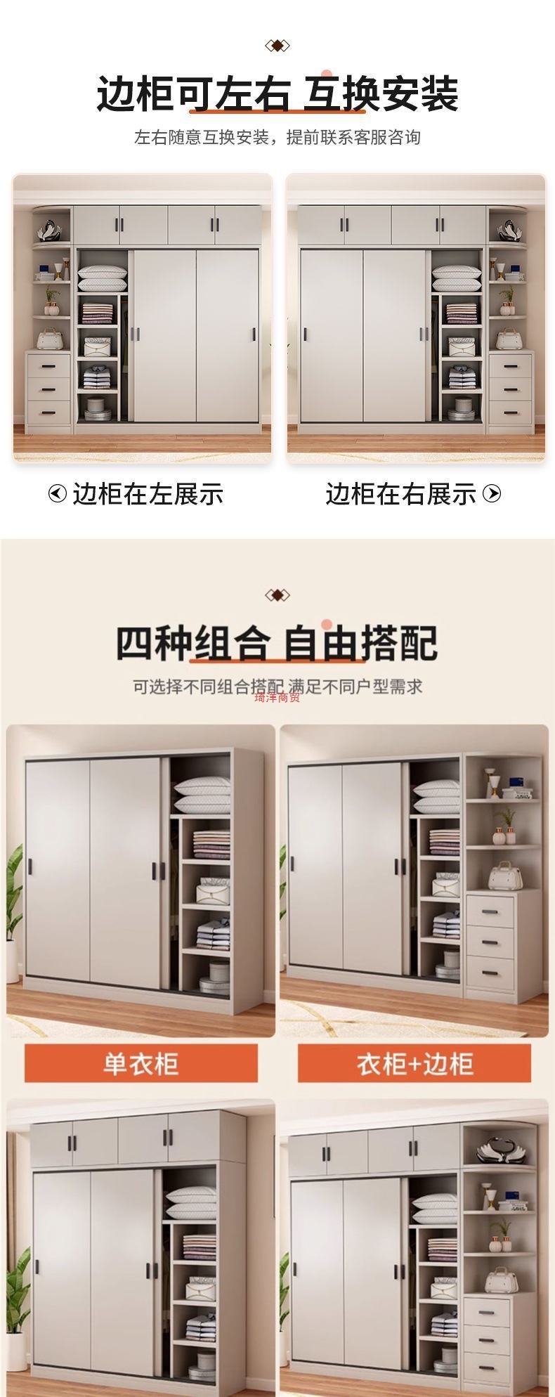 • 1.8m 메인 캐비닛 + 상단 캐비닛 + 측면 캐비닛 [두꺼운 원목 모델]