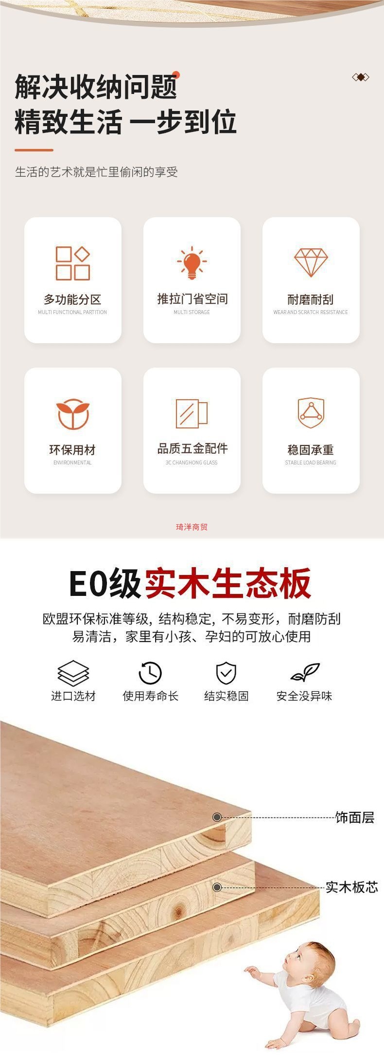 • 2.0m 메인 캐비닛 + 상단 캐비닛 [단단한 나무 두꺼운 버전]