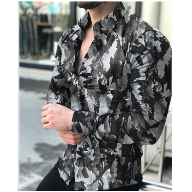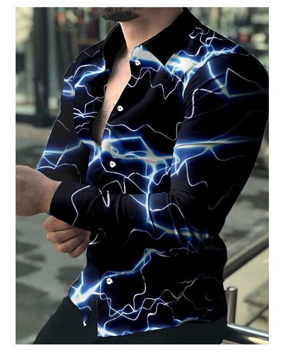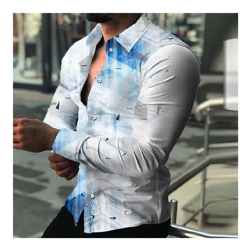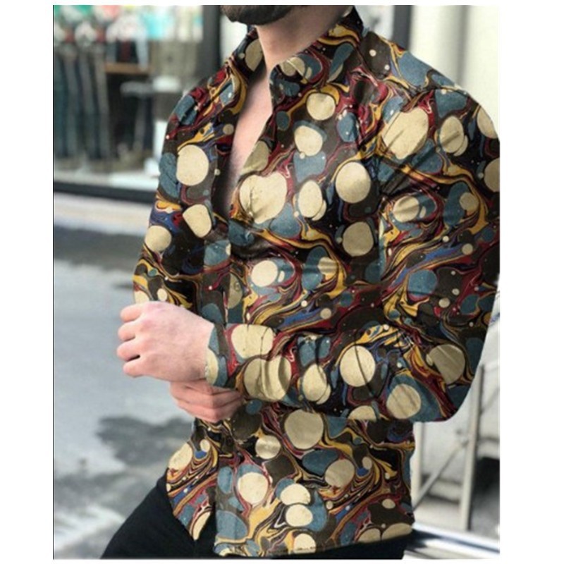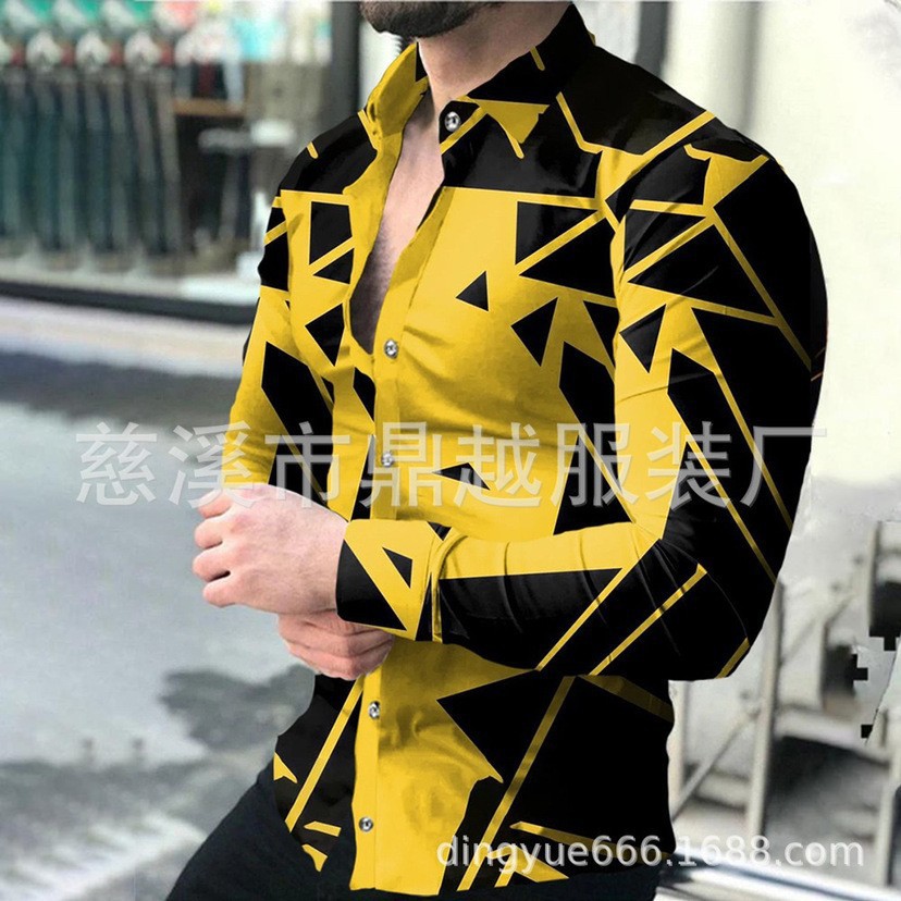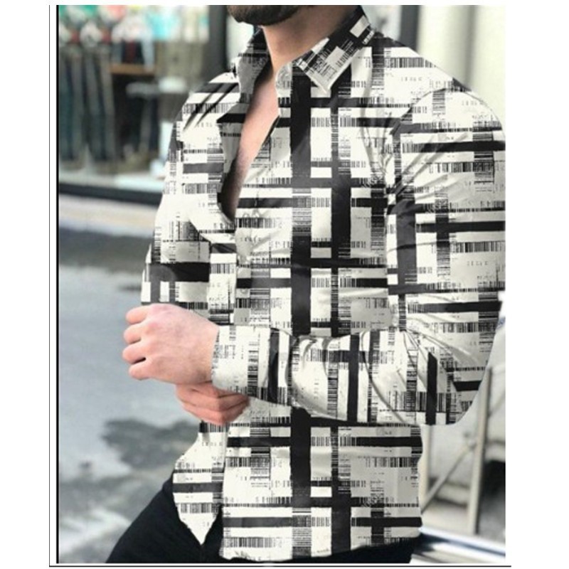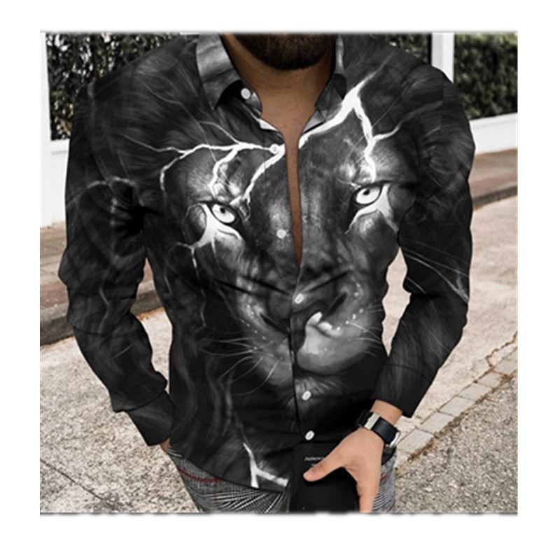 2022 유럽과 미국 남성 셔츠 가을 긴 소매 옷깃 셔츠 3d 인쇄 캐주얼 셔츠 남성 느슨한 남성 셔츠