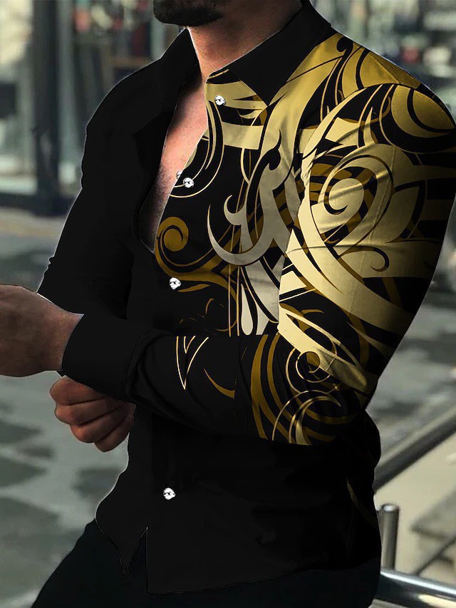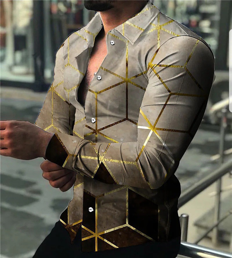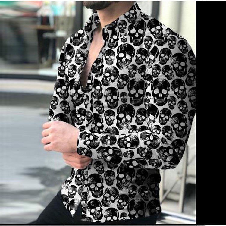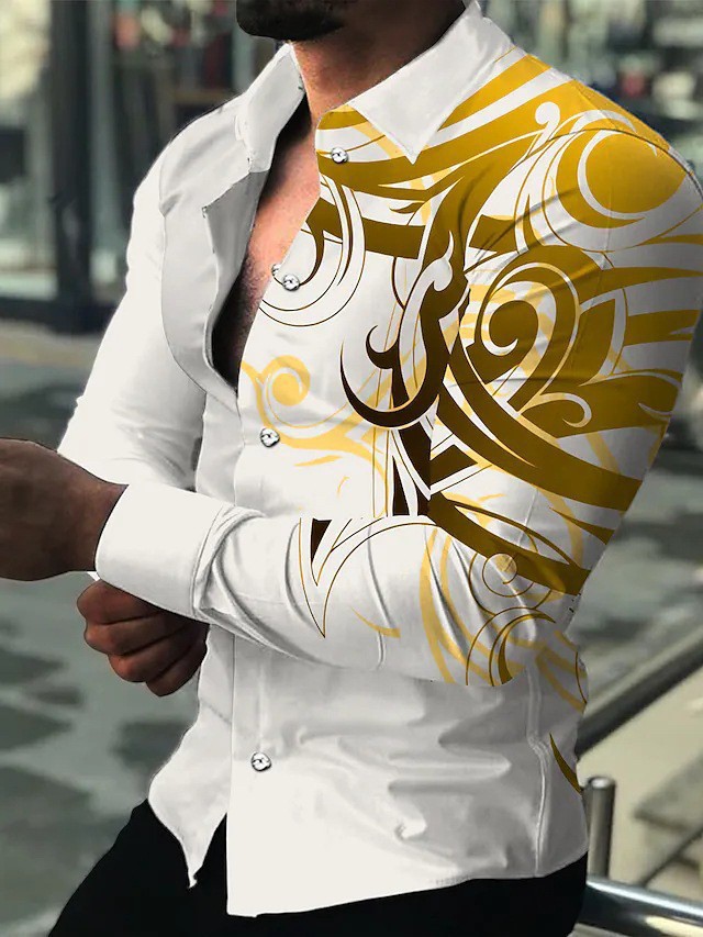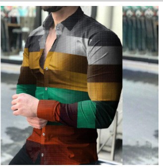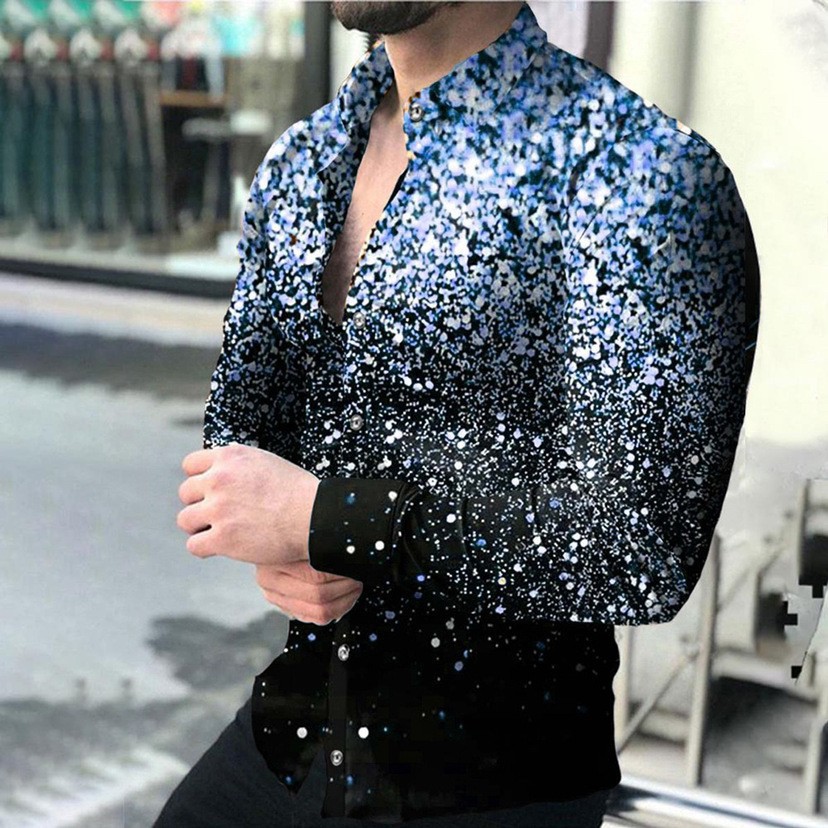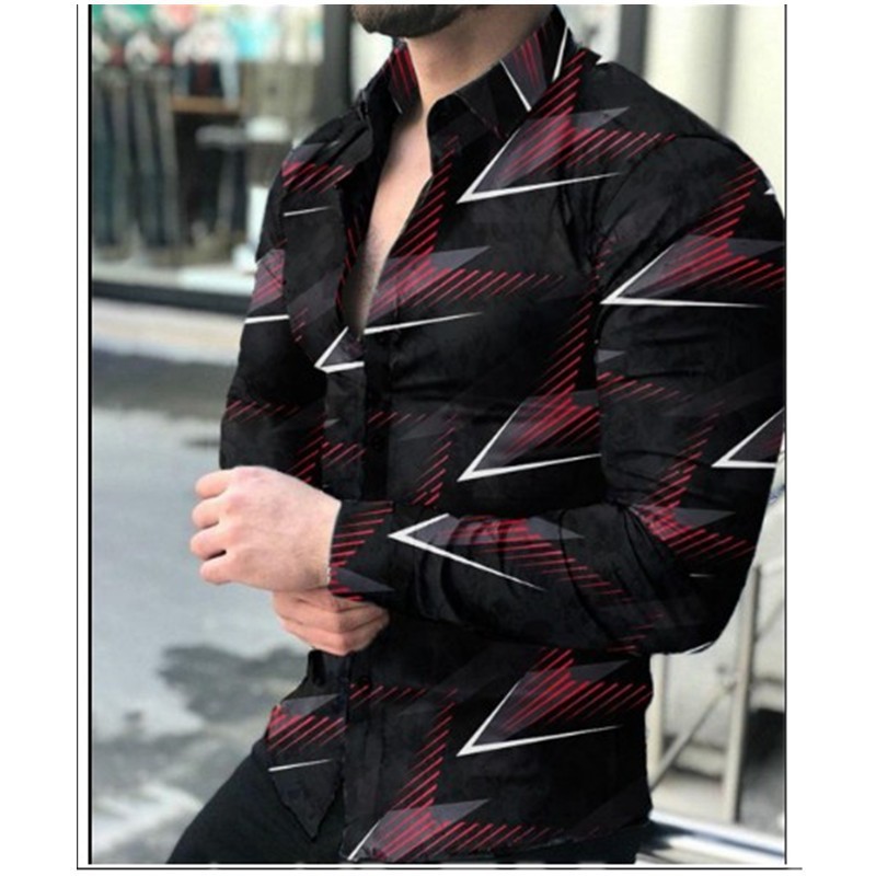 2022 유럽과 미국 남성 셔츠 가을 긴 소매 옷깃 셔츠 3d 인쇄 캐주얼 셔츠 남성 느슨한 남성 셔츠