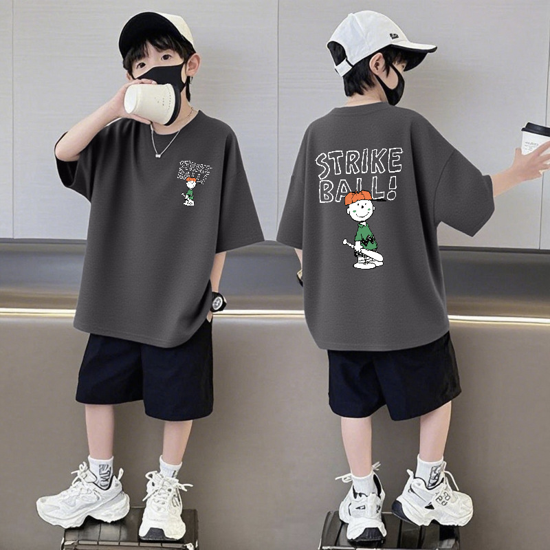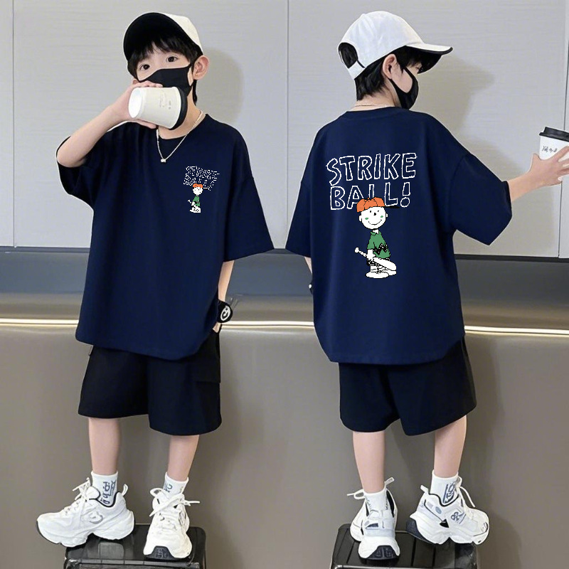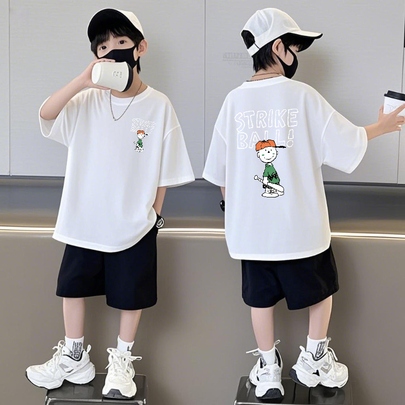 순수 코튼 반팔 반바지 소년 정장 여름 느슨한 중대형 어린이 느슨한 반팔 투피스 스포츠 농구 유니폼스토어 가기