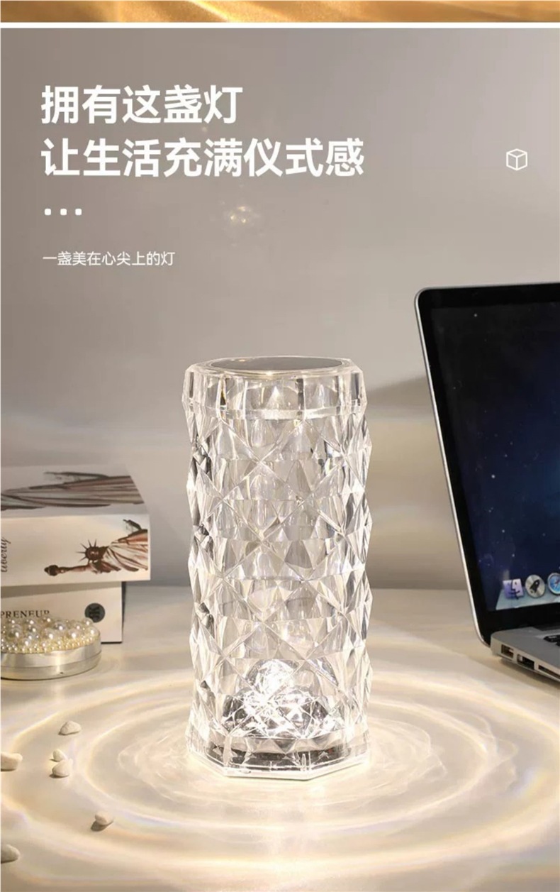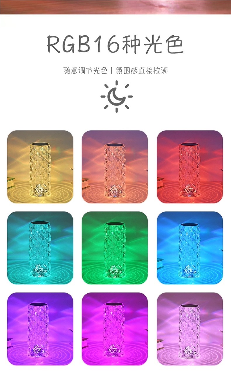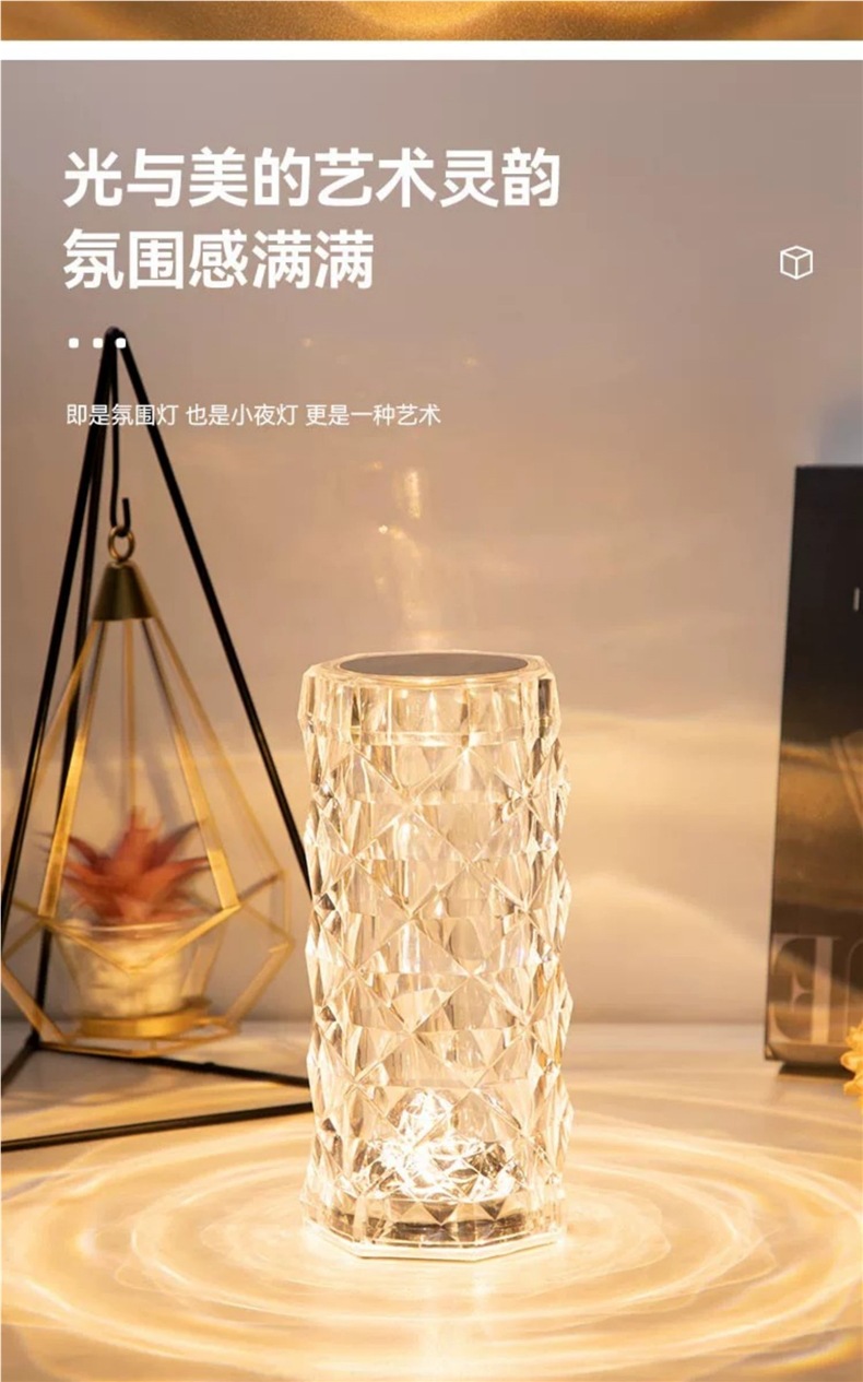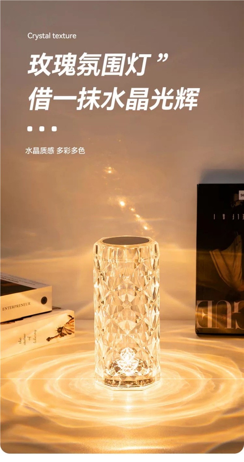 장미 분위기 크리스탈 램프 유도 인터넷 연예인 감성 따뜻하고 낭만적 인 테이블 램프 크리 에이 티브 장식 침실 머리맡 야간 조명
