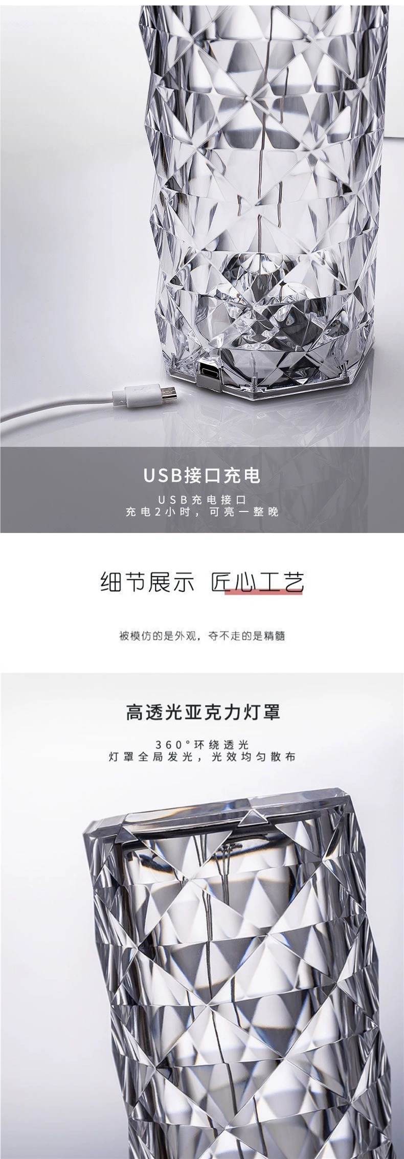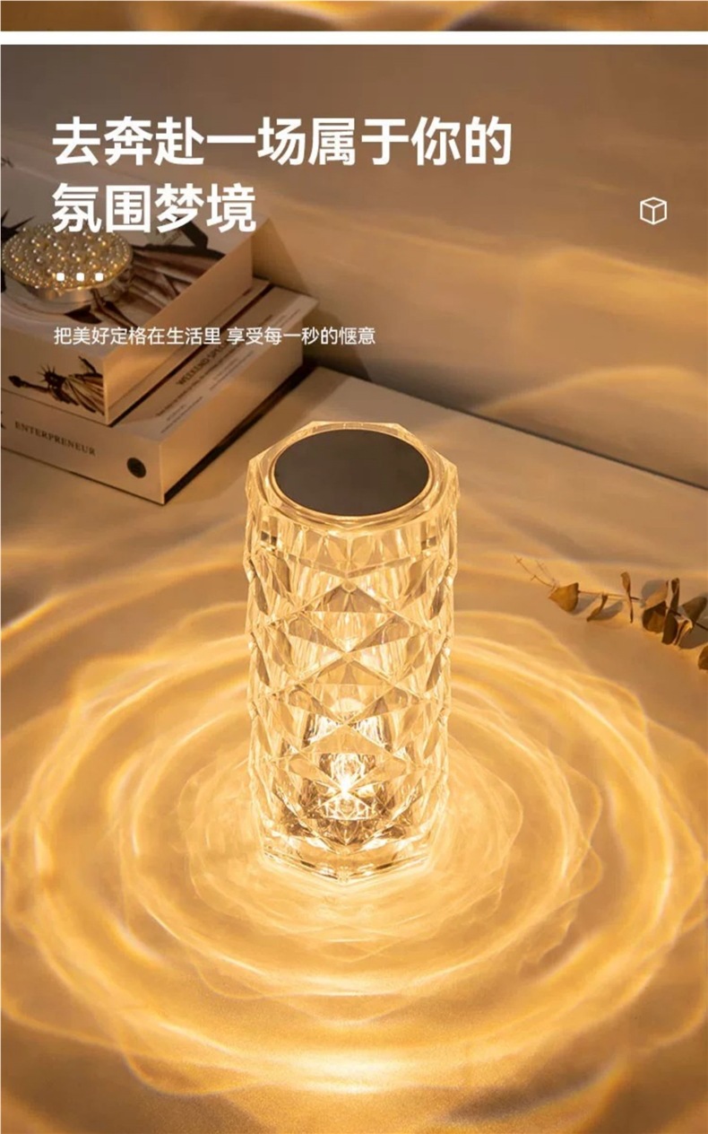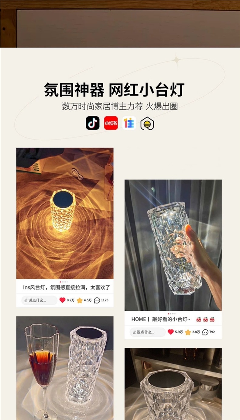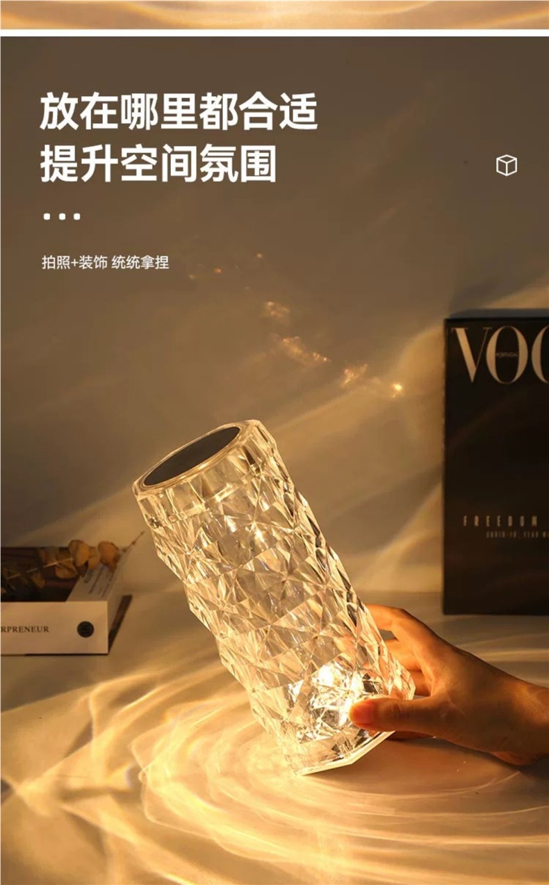 장미 분위기 크리스탈 램프 유도 인터넷 연예인 감성 따뜻하고 낭만적 인 테이블 램프 크리 에이 티브 장식 침실 머리맡 야간 조명