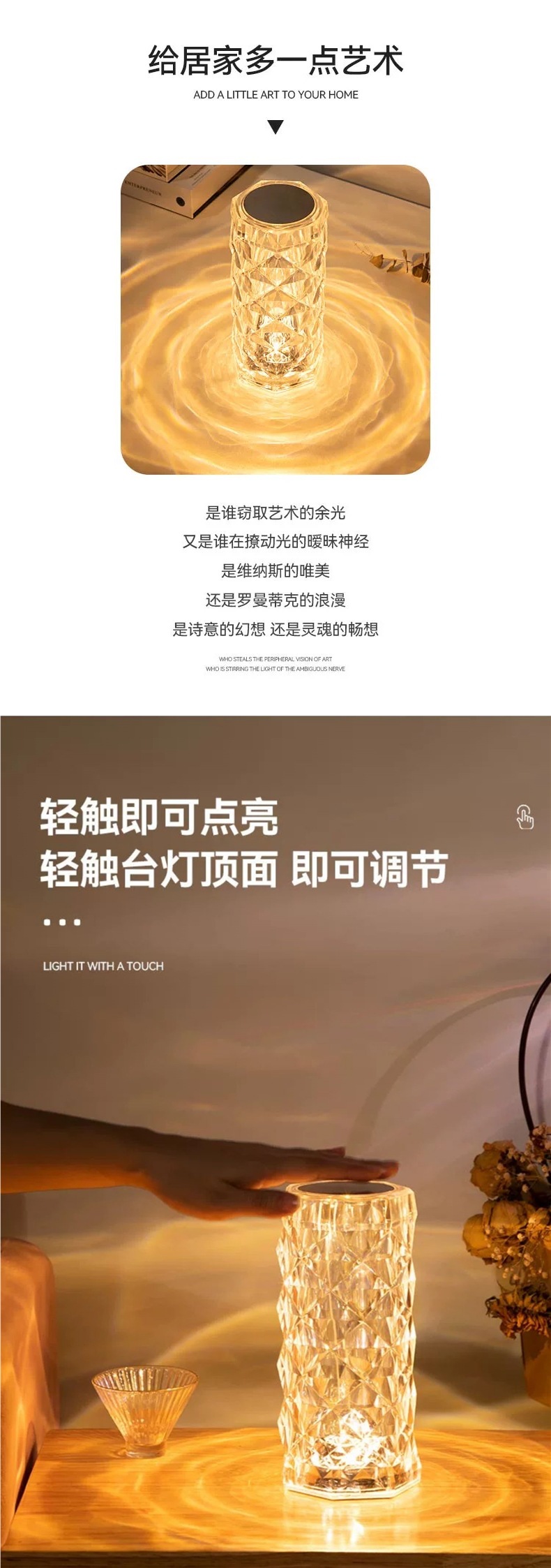 장미 분위기 크리스탈 램프 유도 인터넷 연예인 감성 따뜻하고 낭만적 인 테이블 램프 크리 에이 티브 장식 침실 머리맡 야간 조명스토어 가기