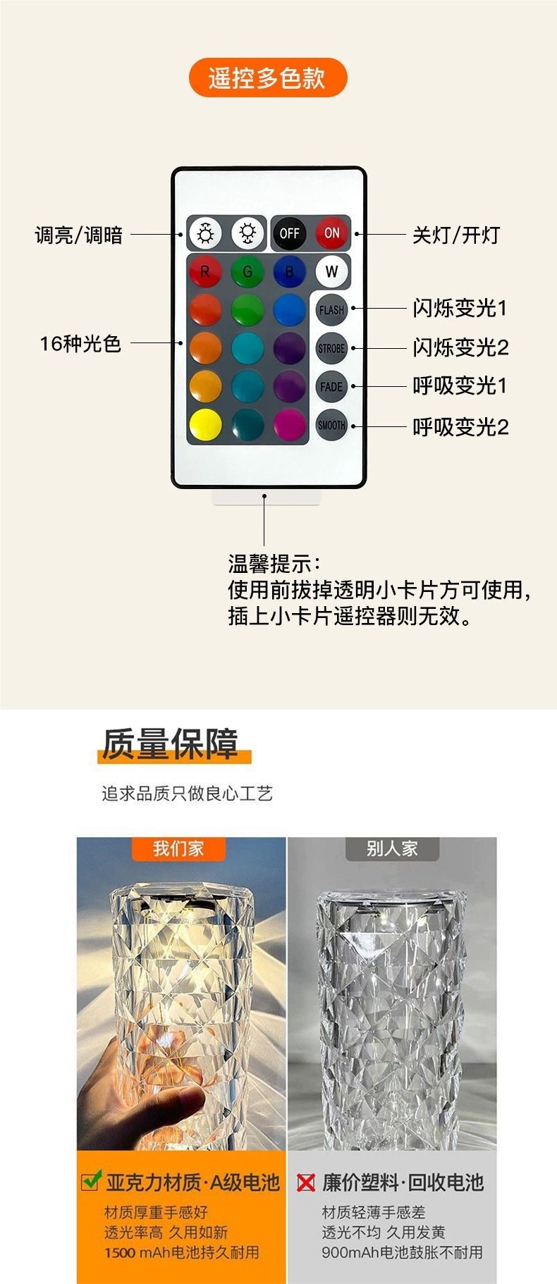 • 대형 사이즈 - 충전식 모델 16색 - [10시간의 높은 배터리 수명] 터치 컬러 조정 및 리모콘