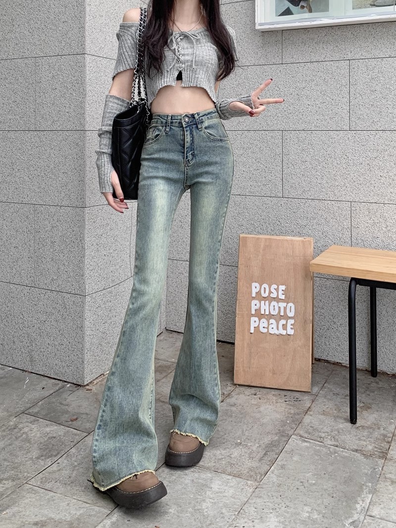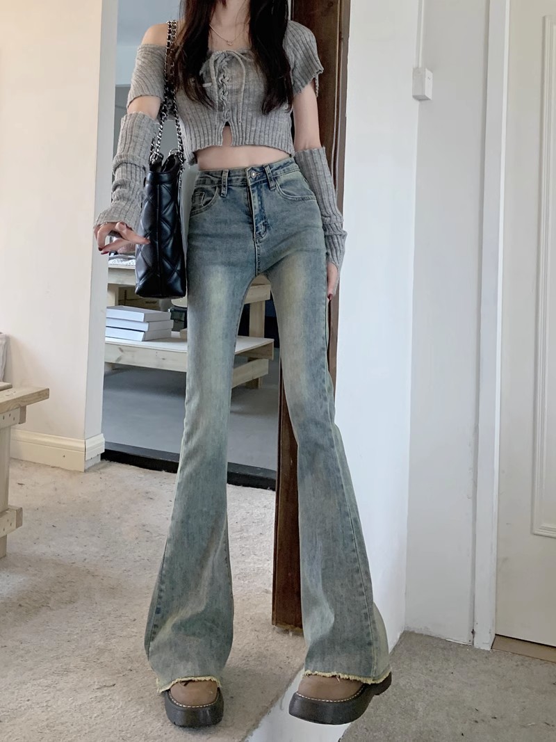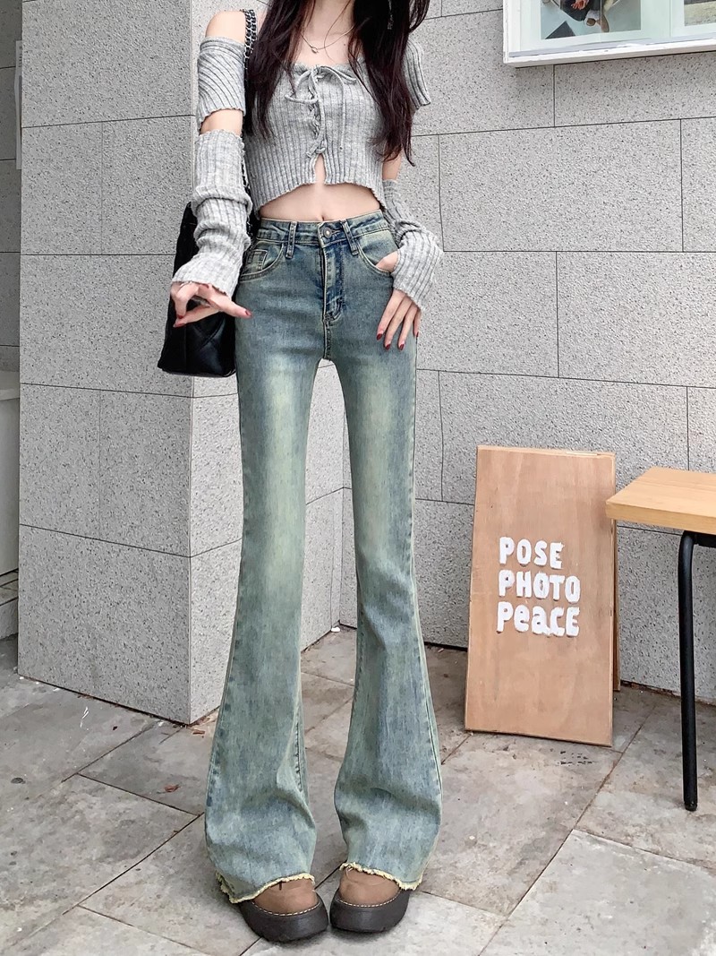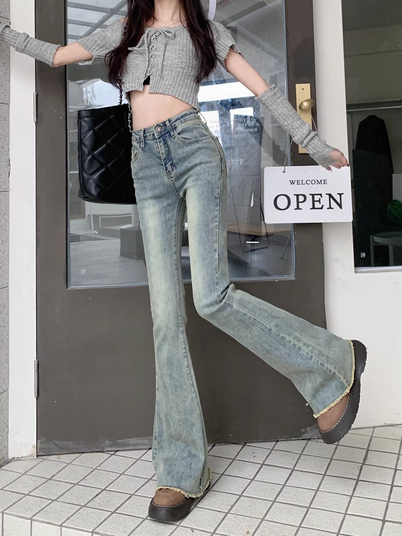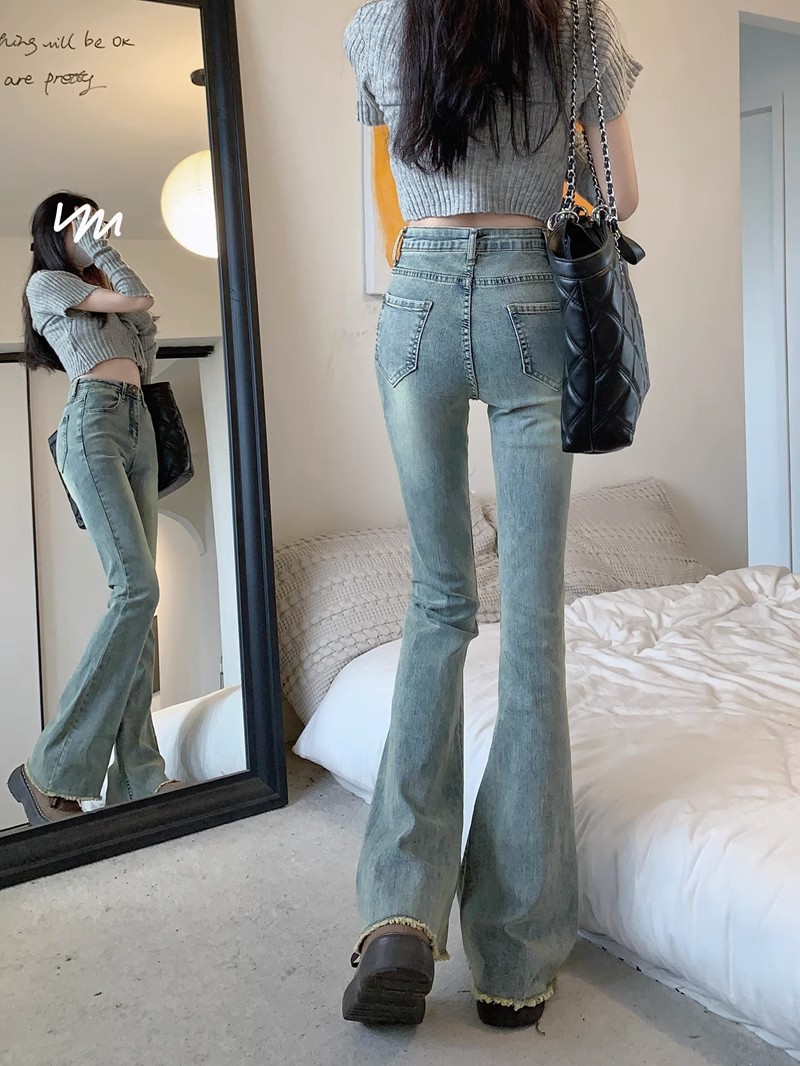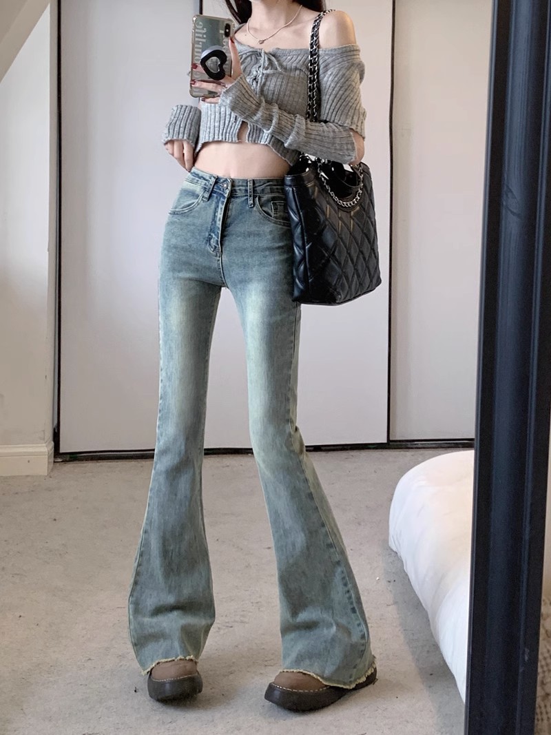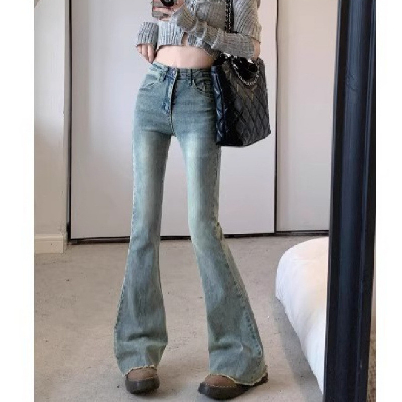 여성을 위한 레트로 로우 엣지 마이크로 플레어 청바지, 봄, 가을 새로운 스타일, 신축성 있는 슬림핏, 다용도 바닥 길이 말굽 바지, 트렌디함스토어 가기