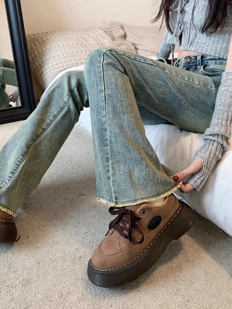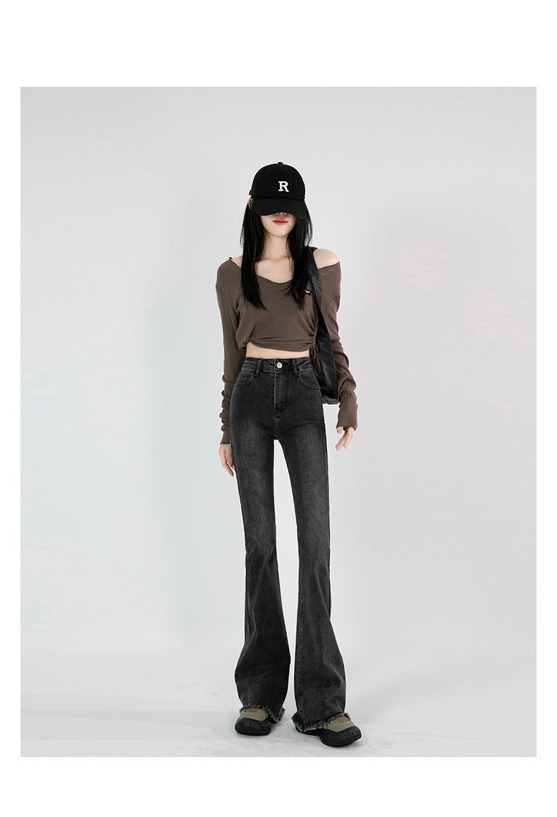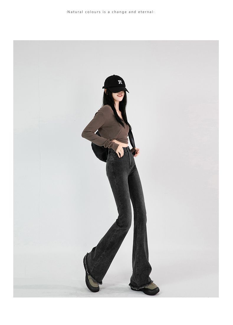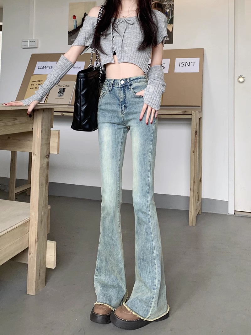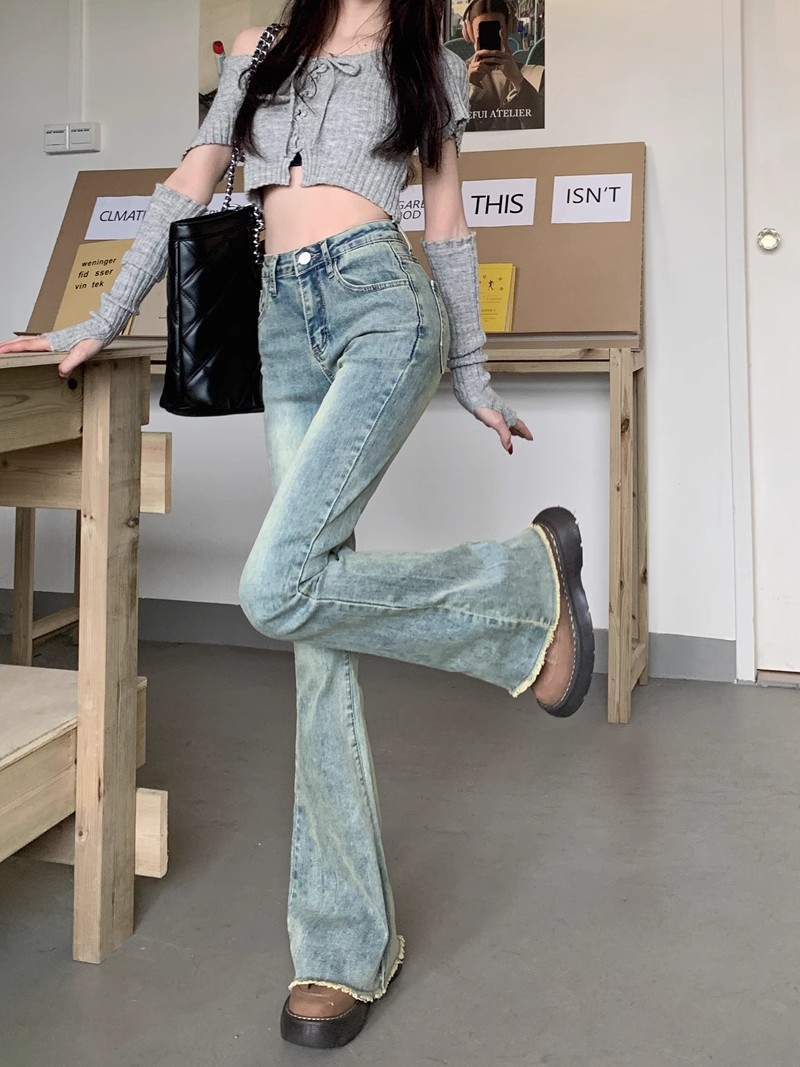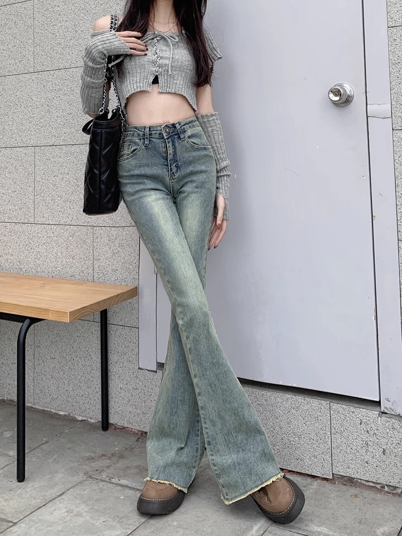 여성을 위한 레트로 로우 엣지 마이크로 플레어 청바지, 봄, 가을 새로운 스타일, 신축성 있는 슬림핏, 다용도 바닥 길이 말굽 바지, 트렌디함스토어 가기