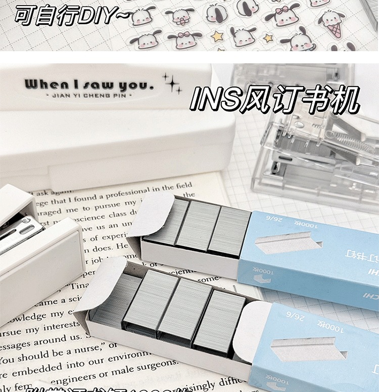 학생들이 편리하게 사용할 수 있는 투명 미니 소형 스테이플러, 소형 스테이플러, 다기능 스테이플러스토어 가기