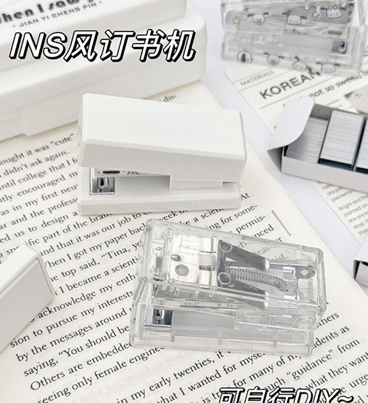 학생들이 편리하게 사용할 수 있는 투명 미니 소형 스테이플러, 소형 스테이플러, 다기능 스테이플러