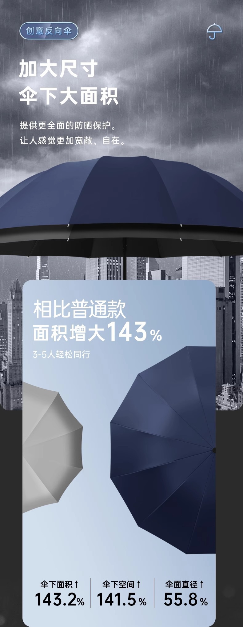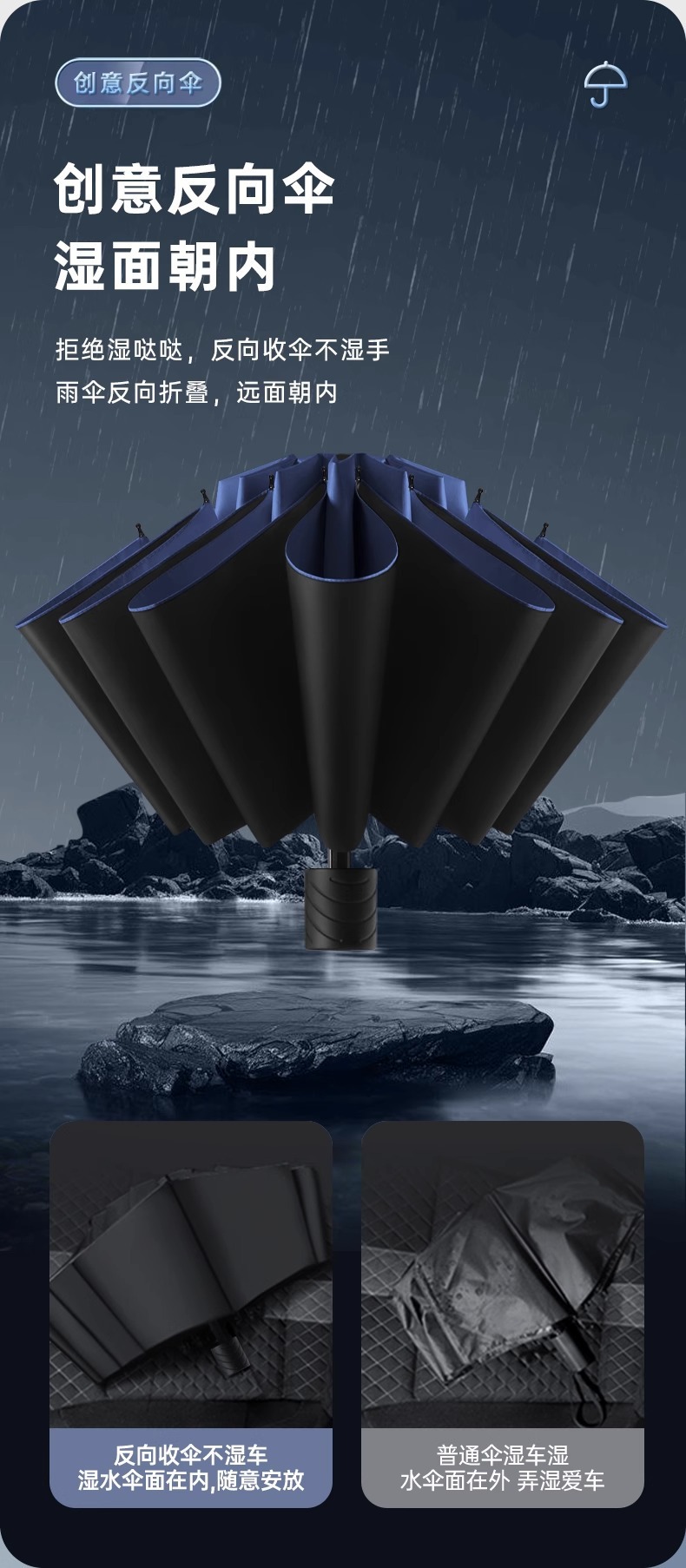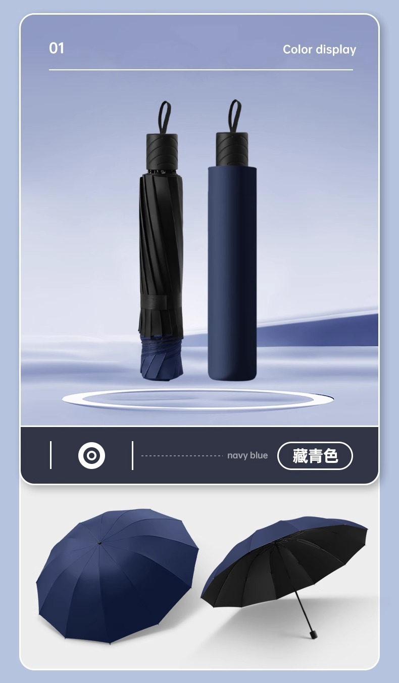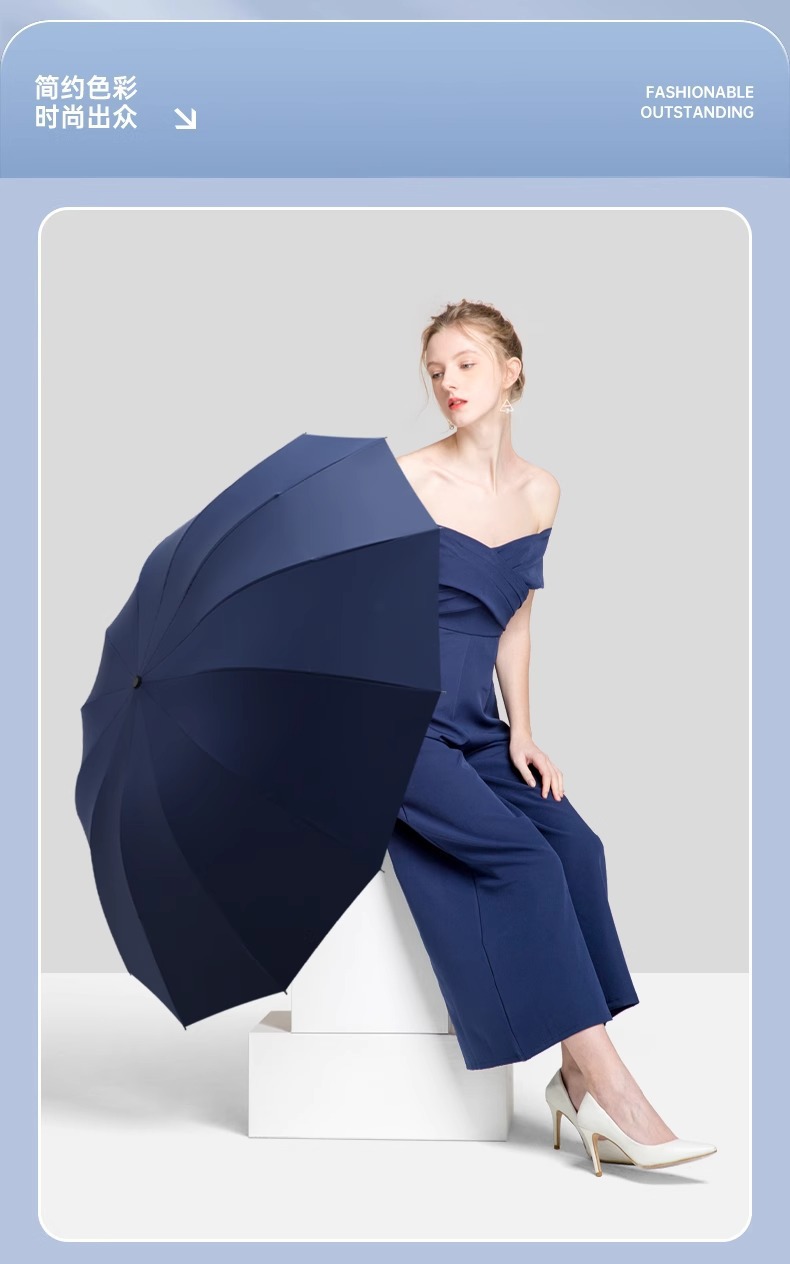 가정용 접이식 방풍 우산, 초대형, 두껍고 강화된 3인용 12본 이중 목적 자외선 차단 우산스토어 가기