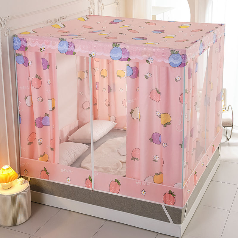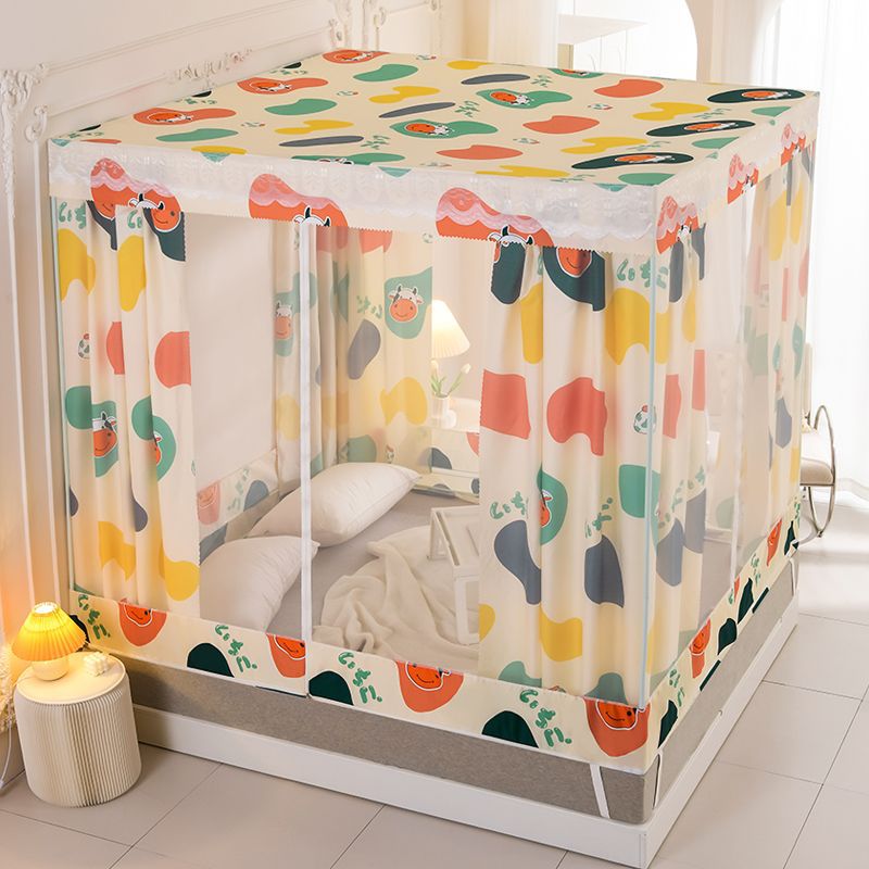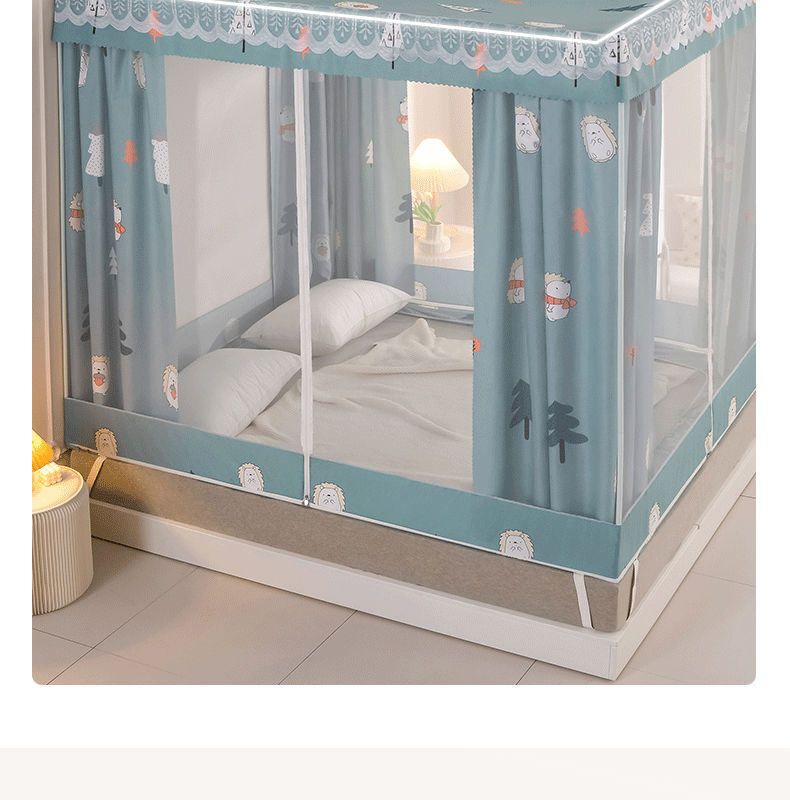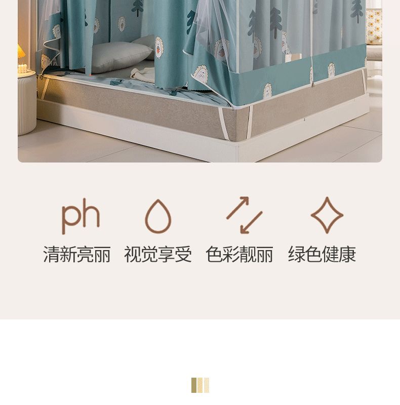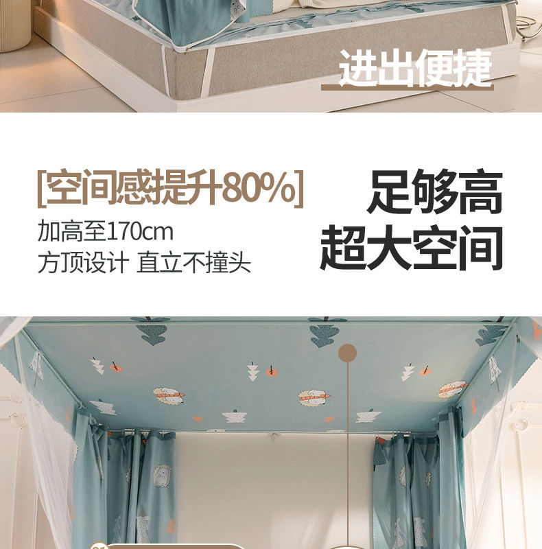침대 쉐이딩 및 방진 가정용 일체형 침대 커튼 모기장 암호화 완전 밀폐형 몽골리안 텐트 브래킷이 있는 낙하 방지 침대 커튼스토어 가기