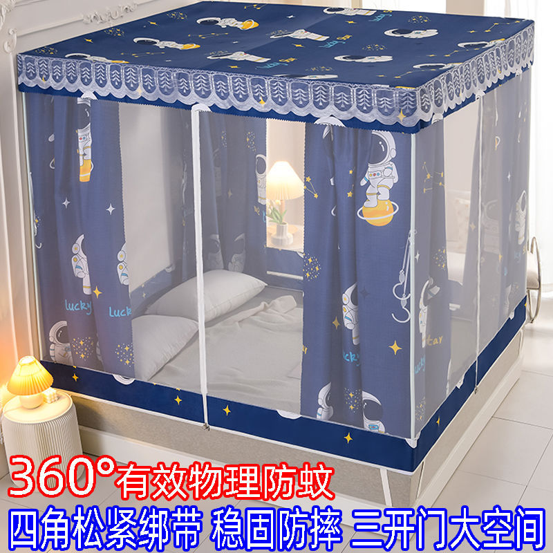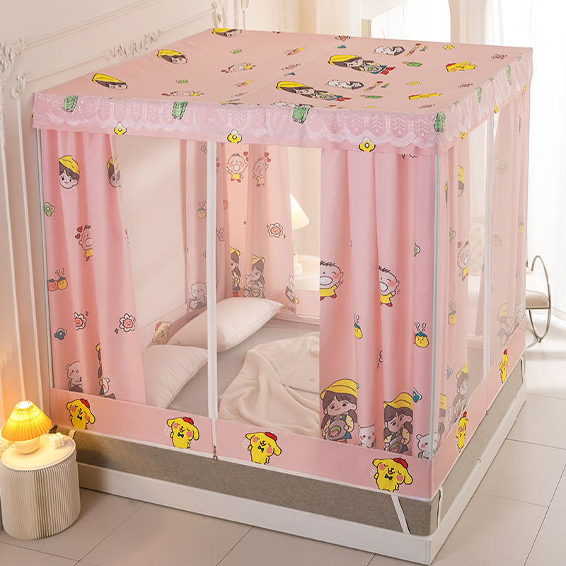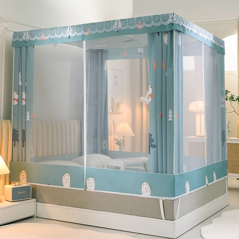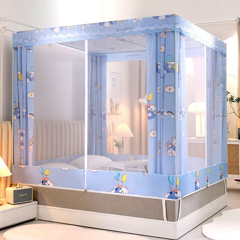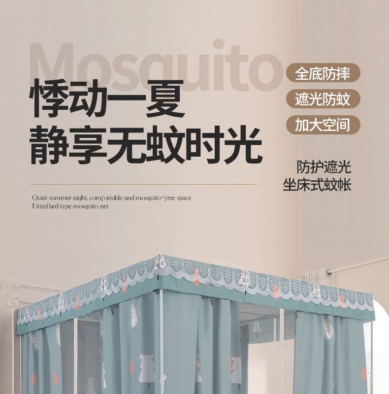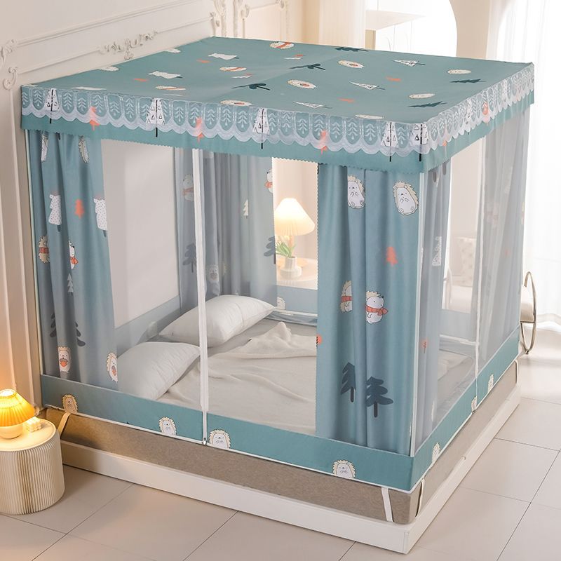 침대 쉐이딩 및 방진 가정용 일체형 침대 커튼 모기장 암호화 완전 밀폐형 몽골리안 텐트 브래킷이 있는 낙하 방지 침대 커튼스토어 가기
