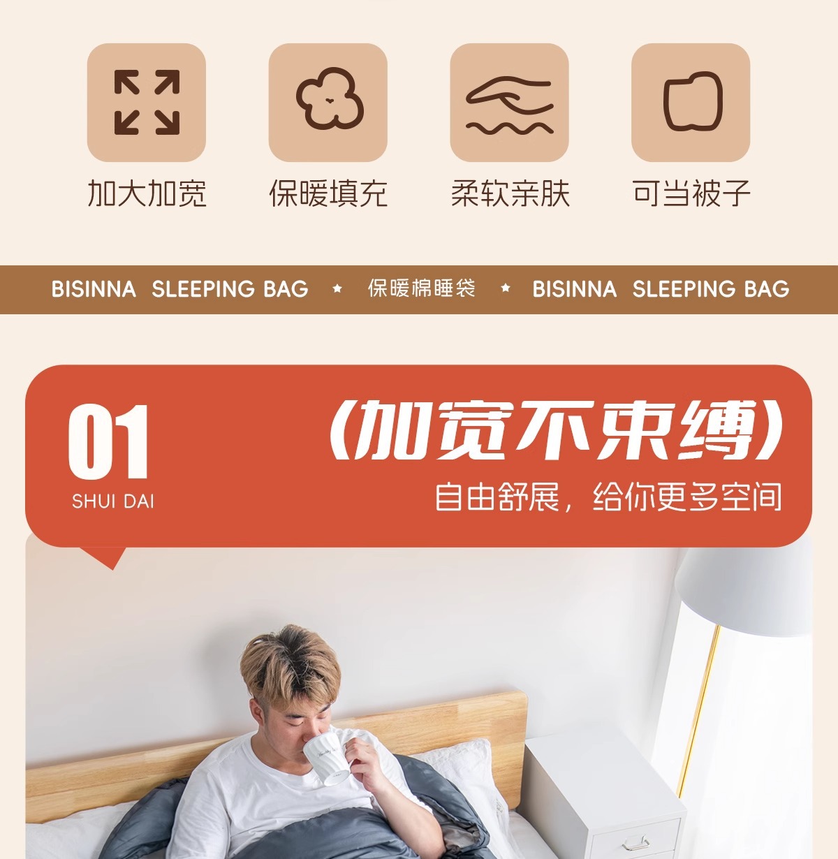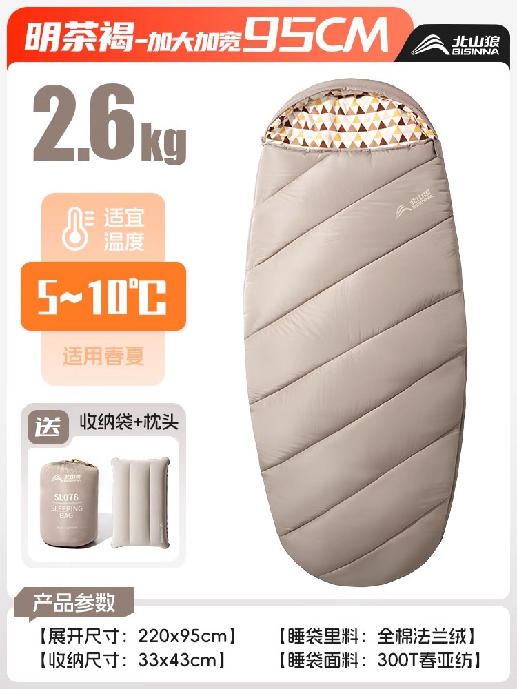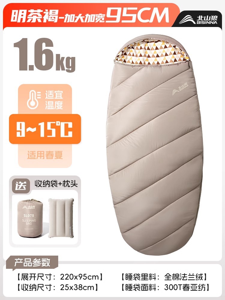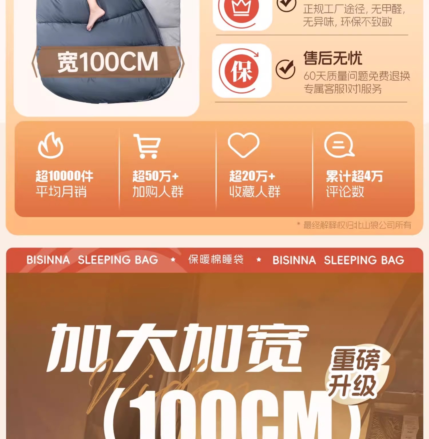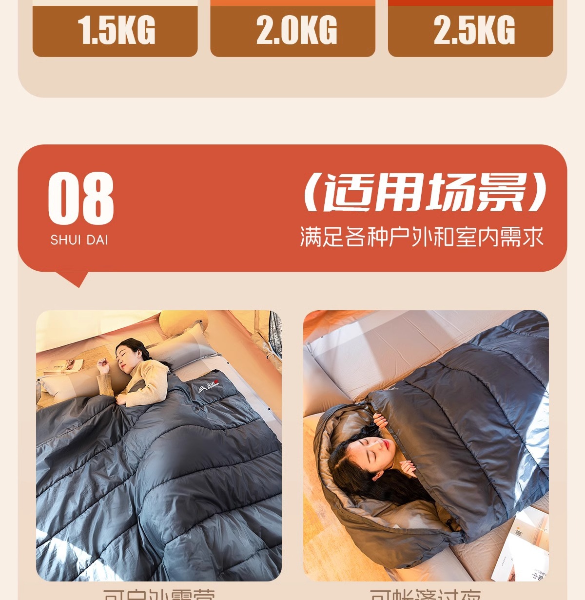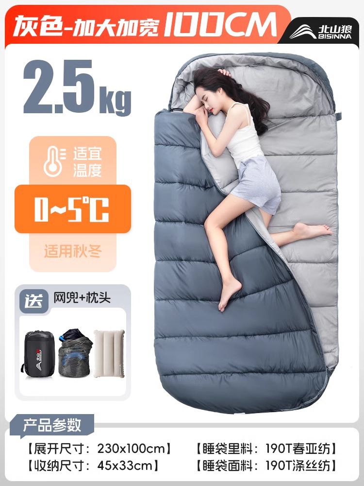 성인 야외 캠핑을 위한 Beishanlang 침낭, 겨울 두꺼운 방한, 사계절 범용, 사무실 싱글 및 더블 점심 시간