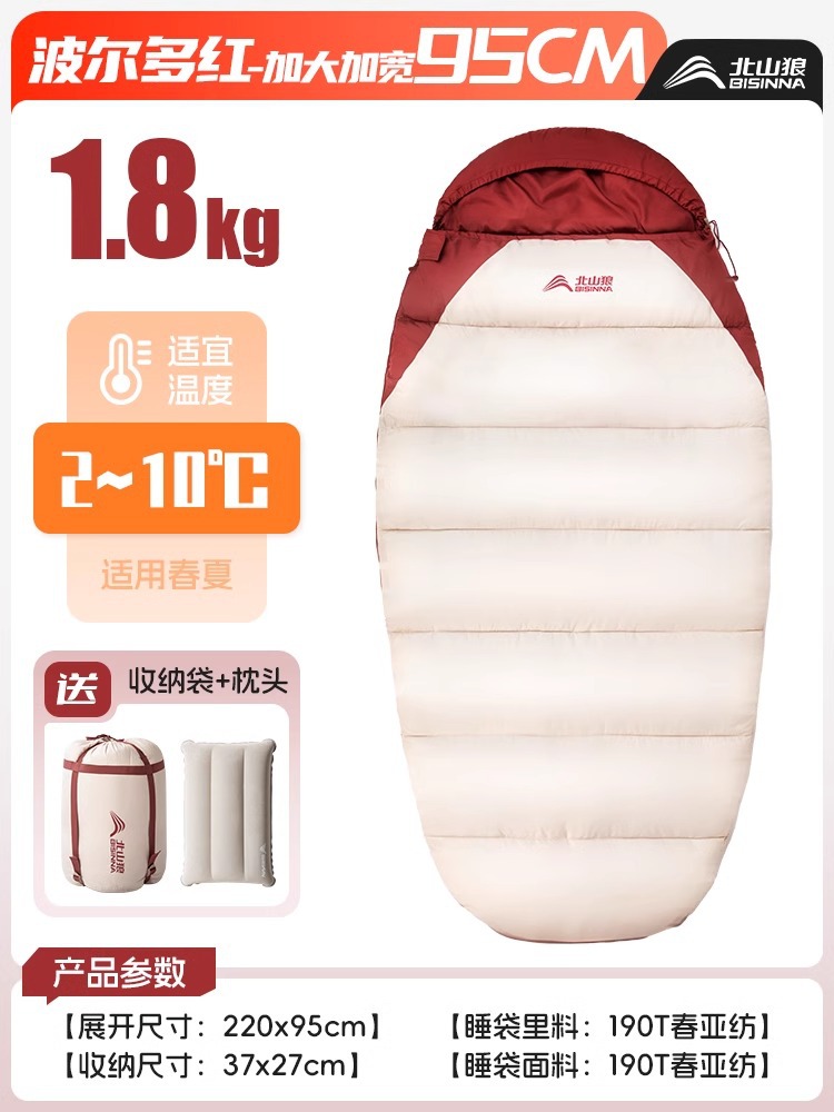 • 가장 먼저 추천하는 것은 100cm 넓이의 침낭과 무료로 제공되는 베개입니다.