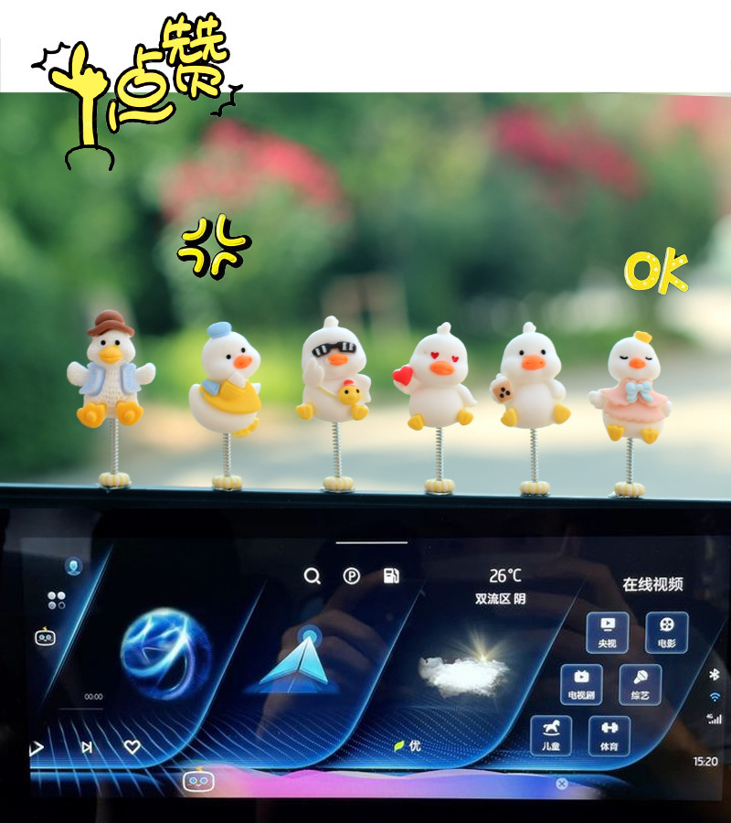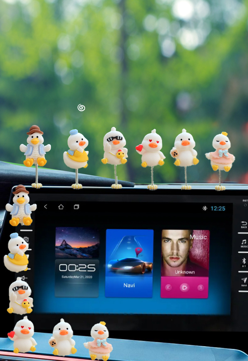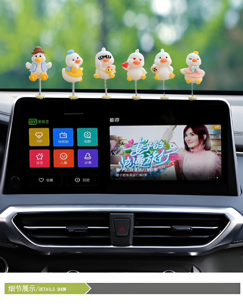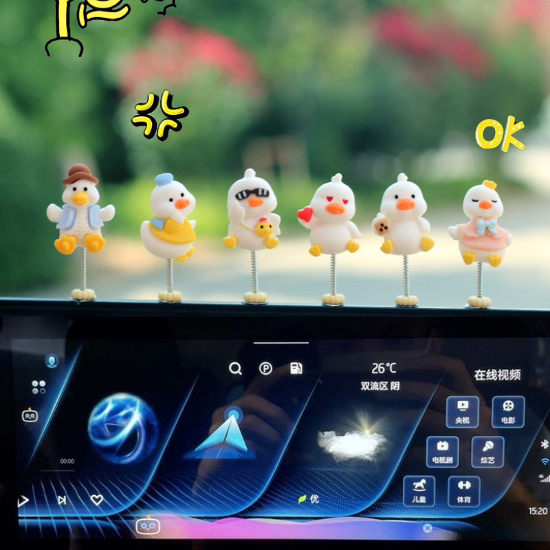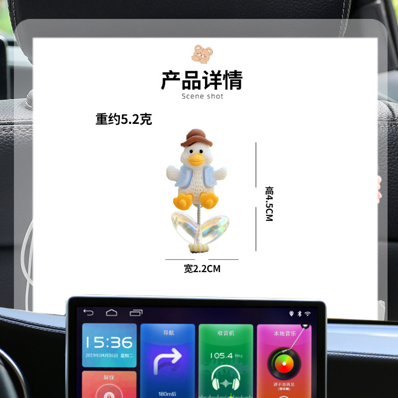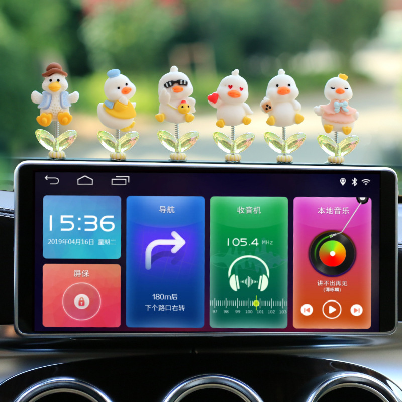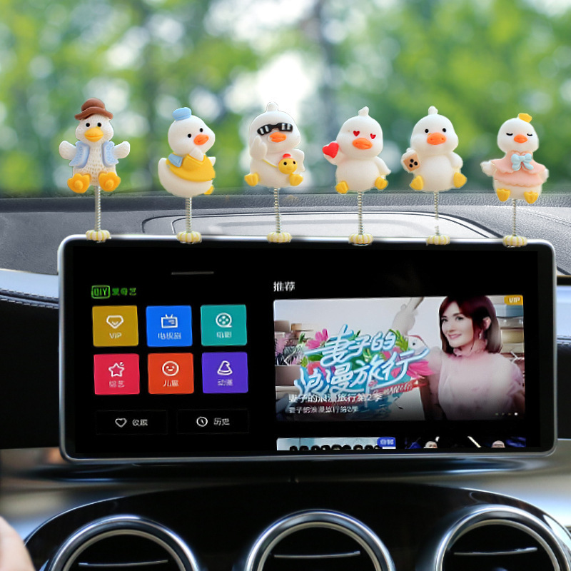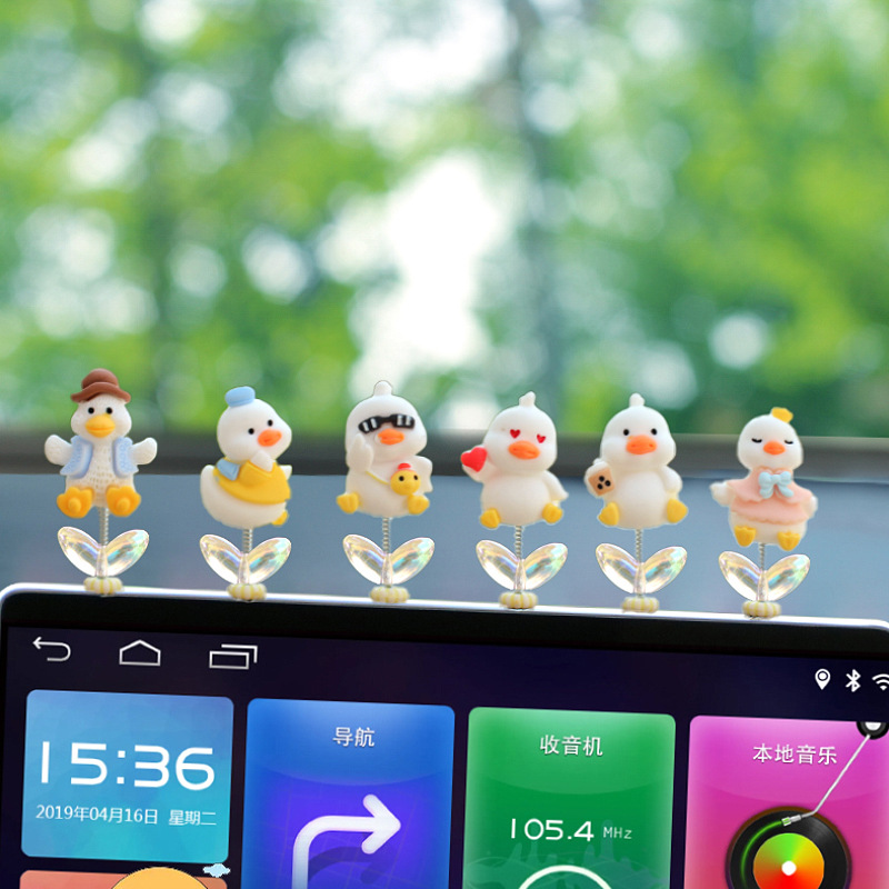 새로운 슈퍼 귀여운 작은 오리 자동차 장식품 만화 자동차 센터 콘솔 네비게이션 화면 장식 쉐이크 헤드 장식품
