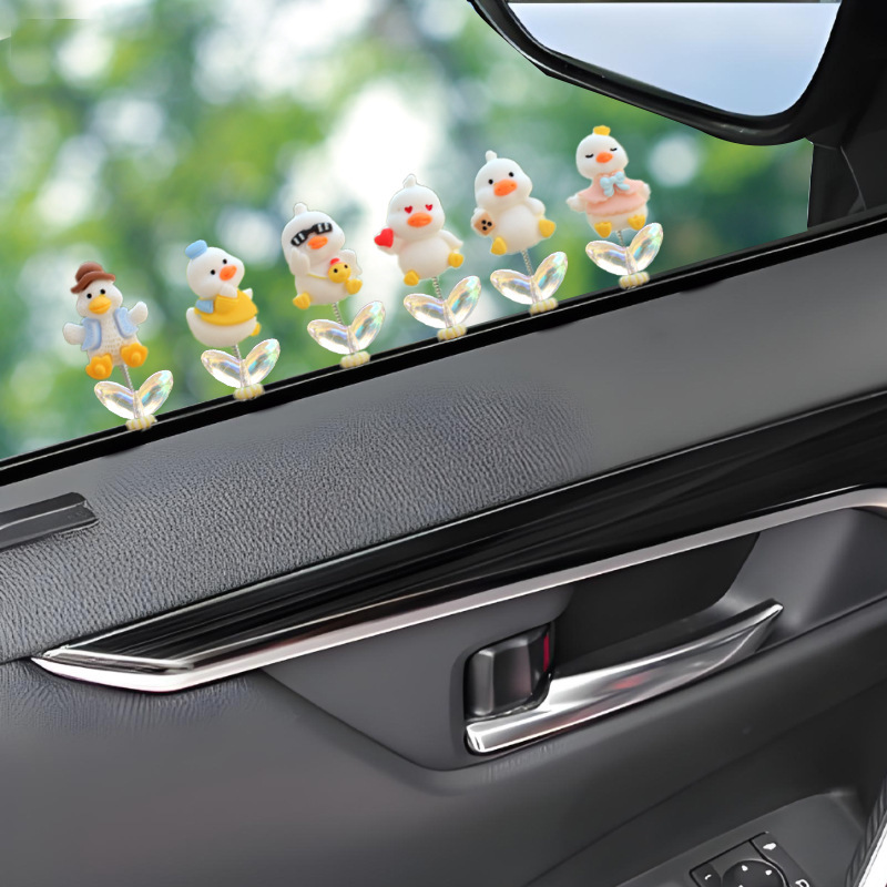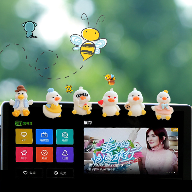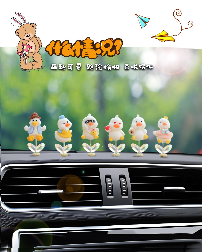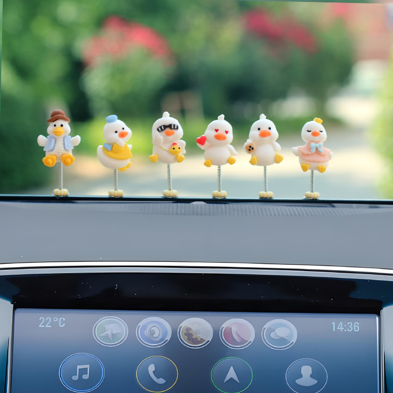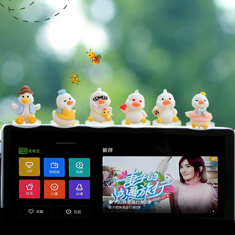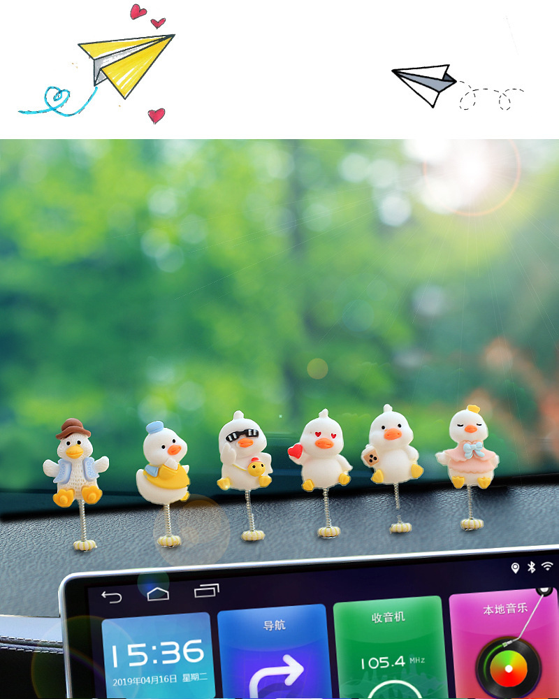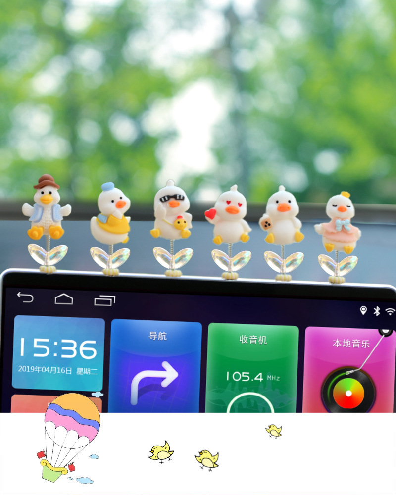 새로운 슈퍼 귀여운 작은 오리 자동차 장식품 만화 자동차 센터 콘솔 네비게이션 화면 장식 쉐이크 헤드 장식품