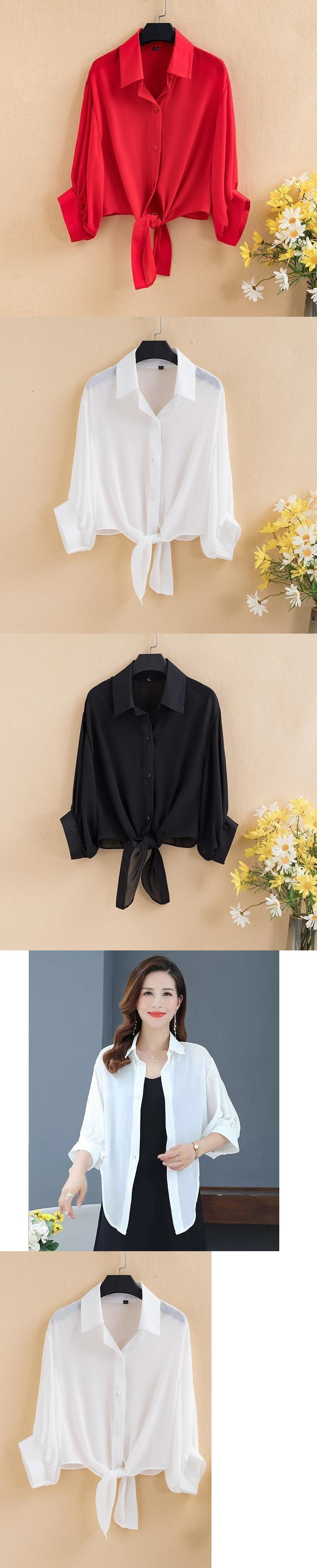 쉬폰 셔츠, 단색 루즈 아우터 가디건, 해변 자외선 차단 의류, 여름 에어컨 셔츠, 스커트와 숄, 여성용스토어 가기