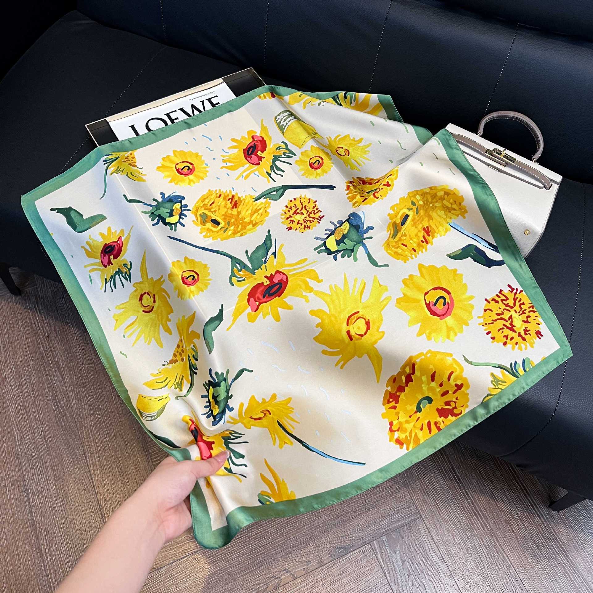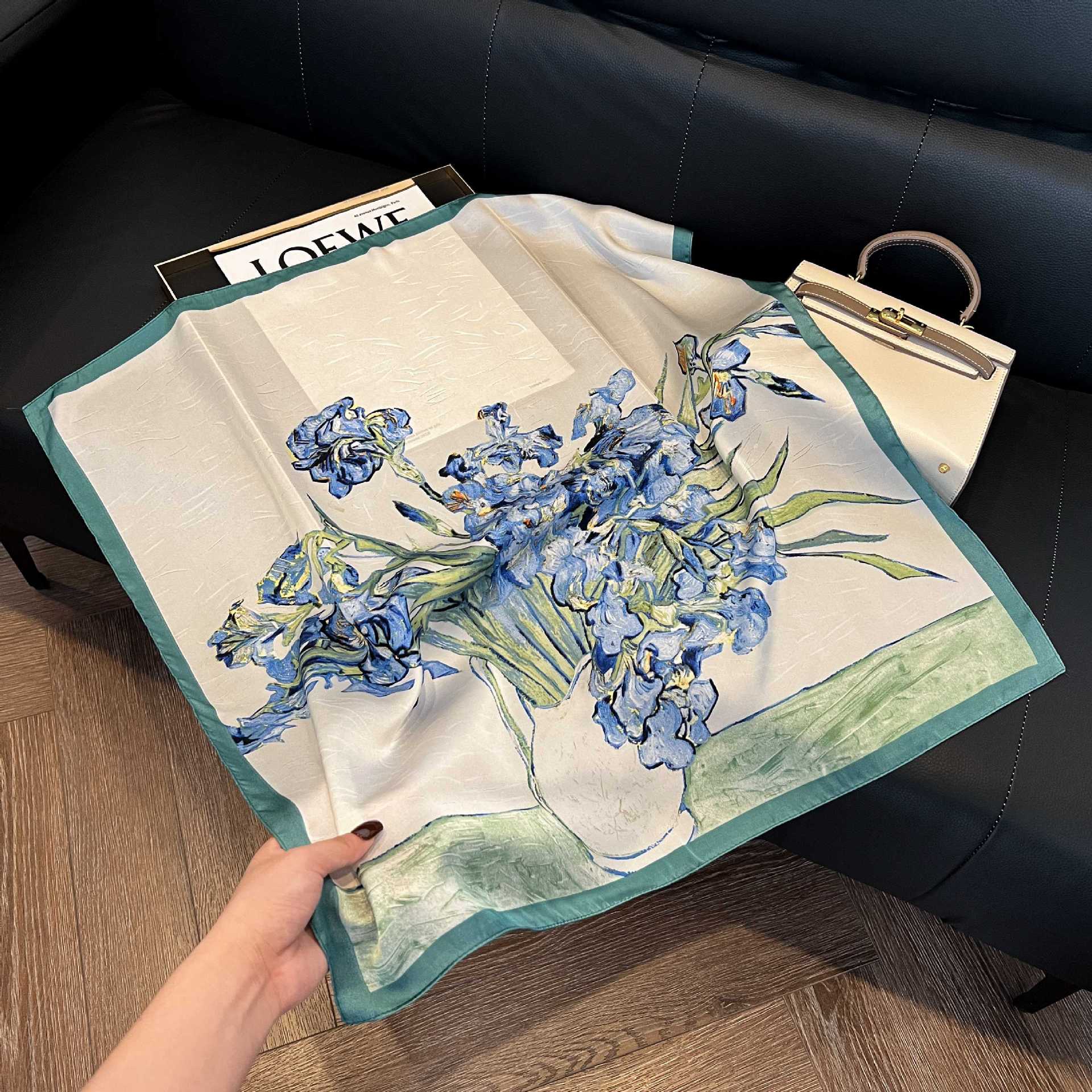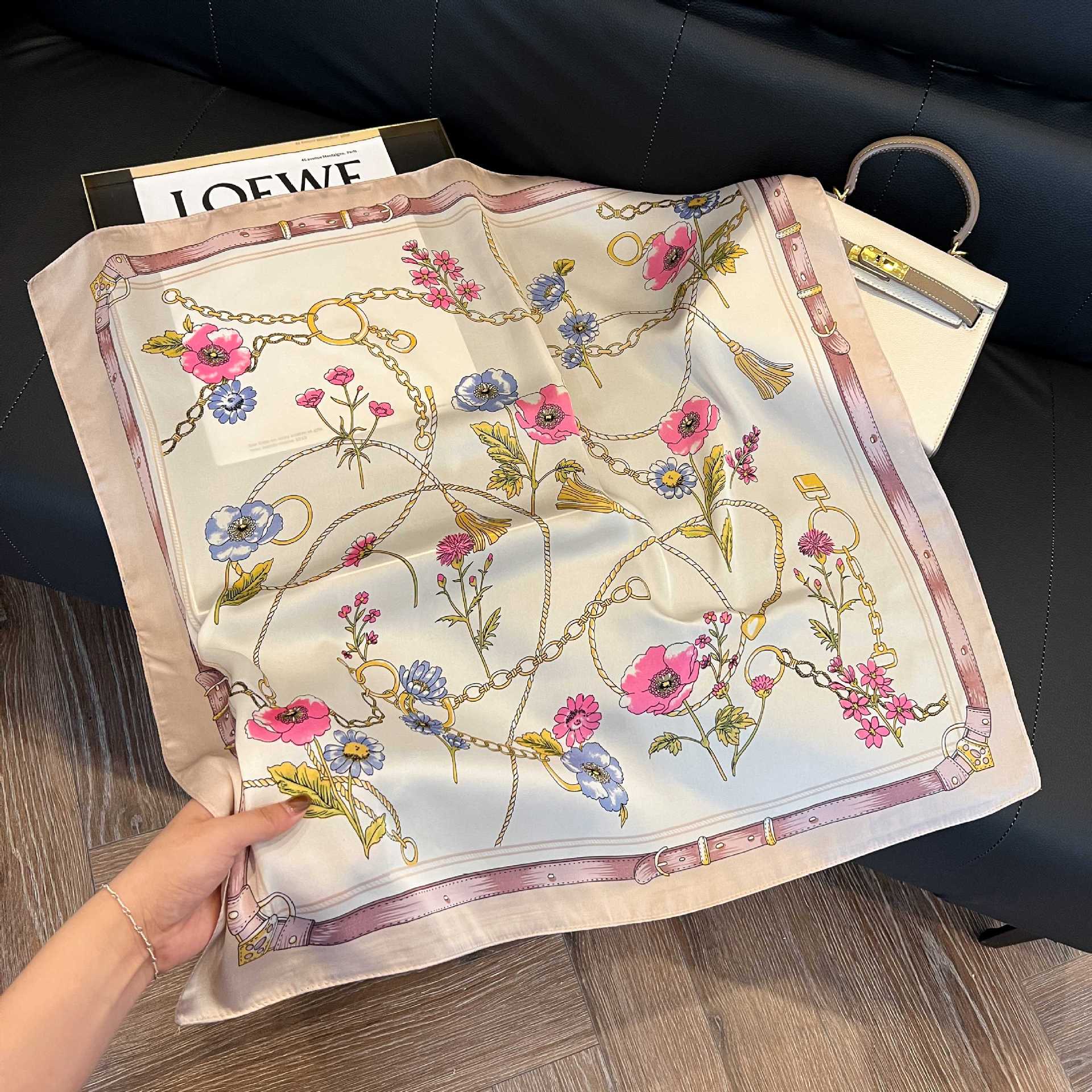 [꽃 스타일] 여성용 크로스보더 아마존 실크 스카프 2025 엄마를 위한 새로운 고급 얇은 선물 70 정사각형 스카프스토어 가기