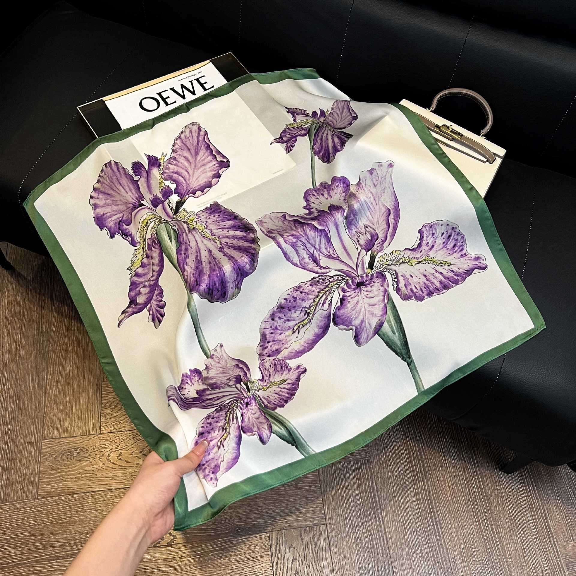 [꽃 스타일] 여성용 크로스보더 아마존 실크 스카프 2025 엄마를 위한 새로운 고급 얇은 선물 70 정사각형 스카프