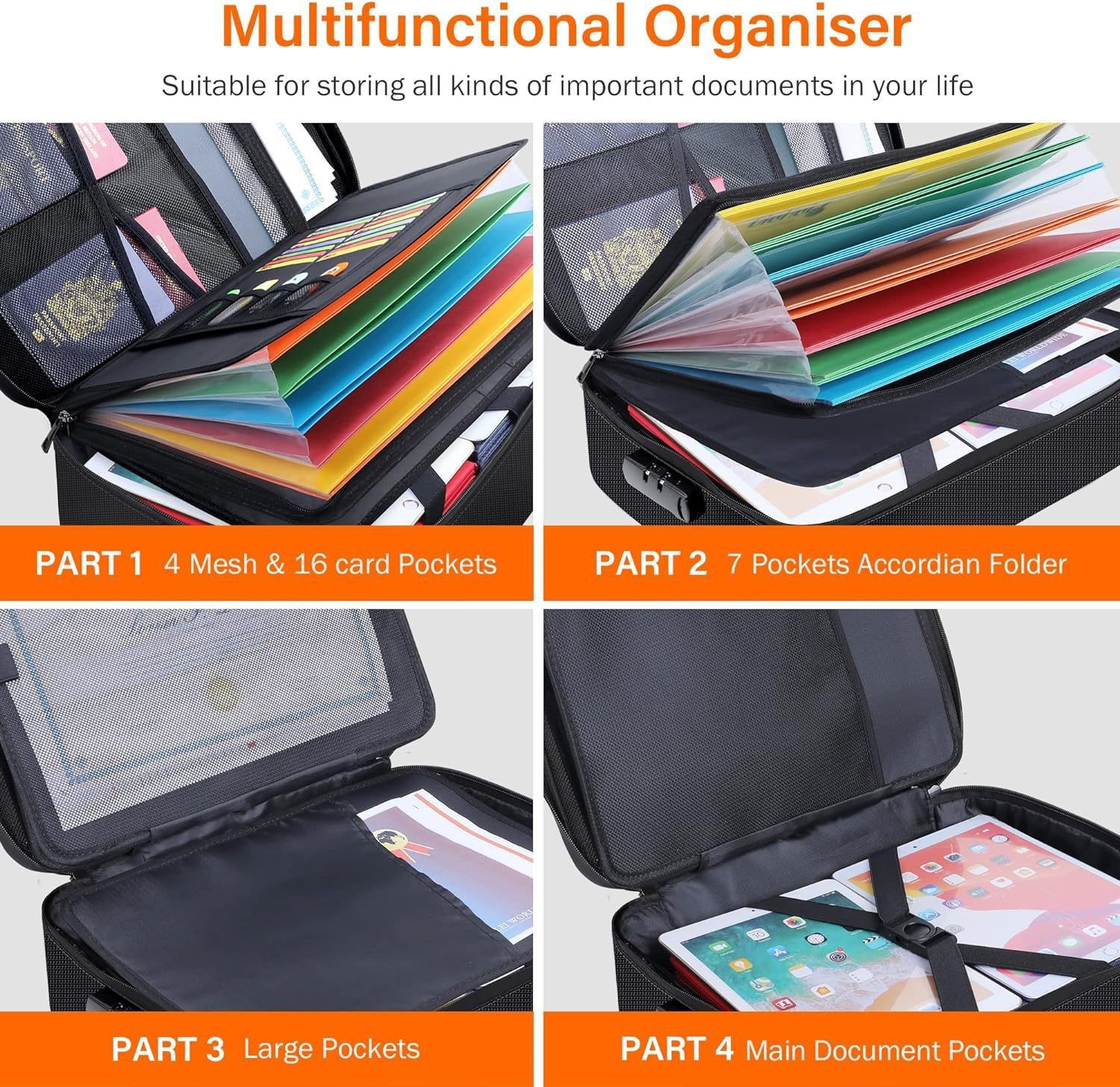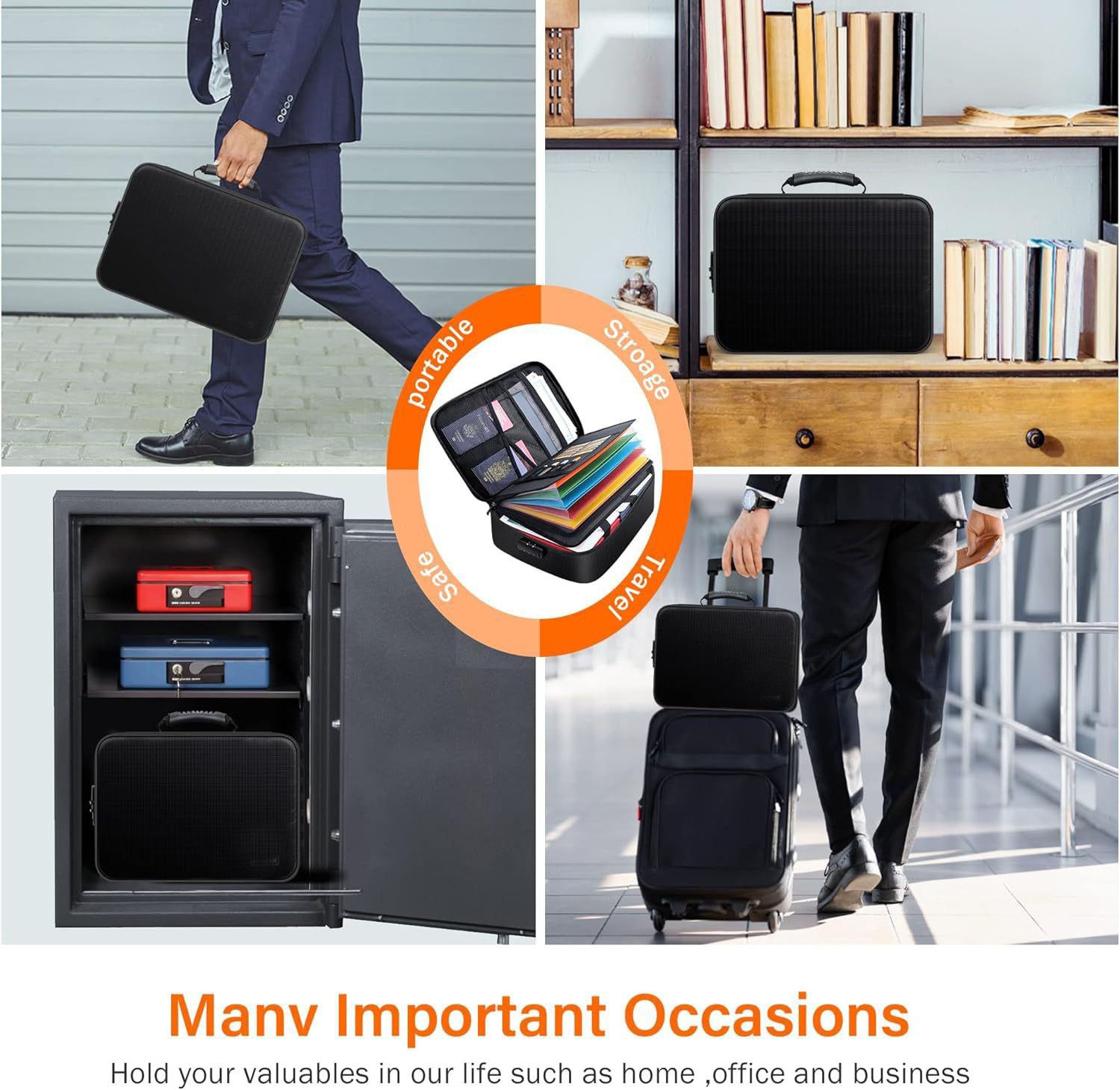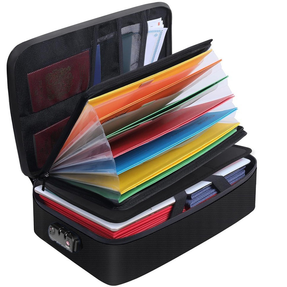 오르간형 페이지 여행 서류 보관 가방, 여권 카드 가방, 방수 및 방화 문서 가방, 파일 정리 보관함, UL 방수스토어 가기