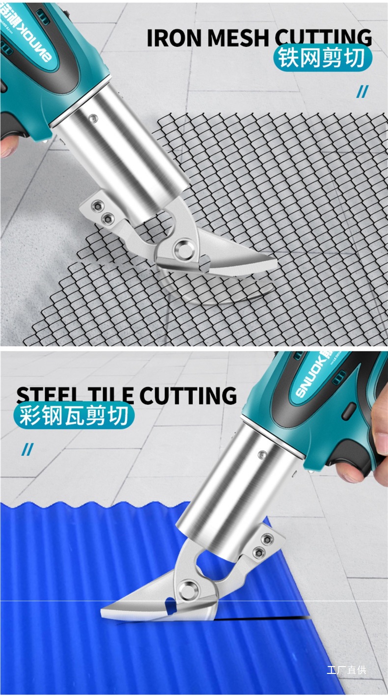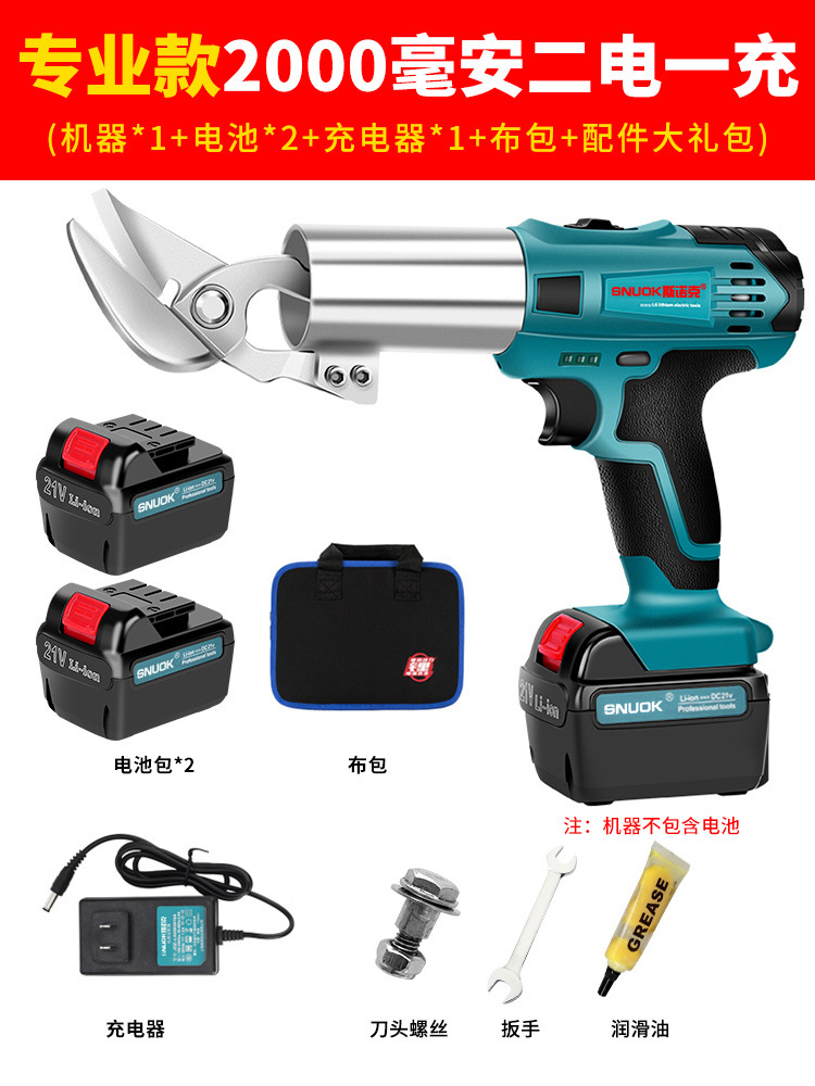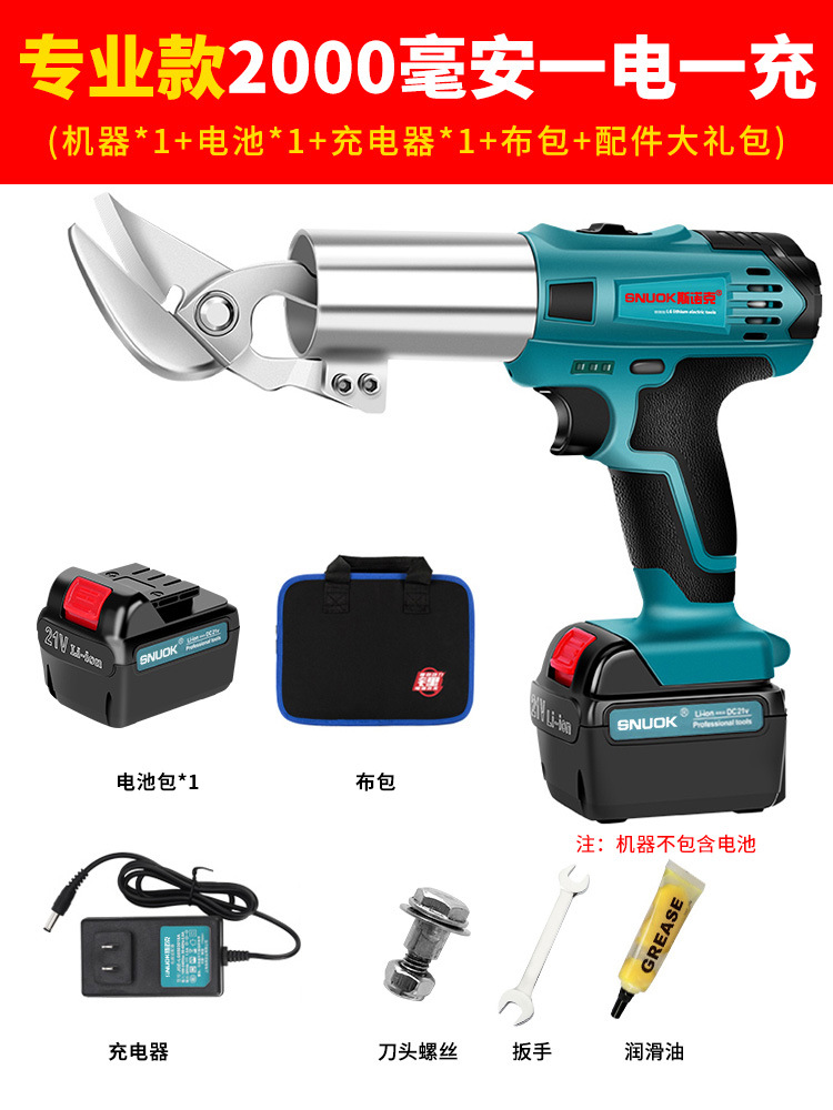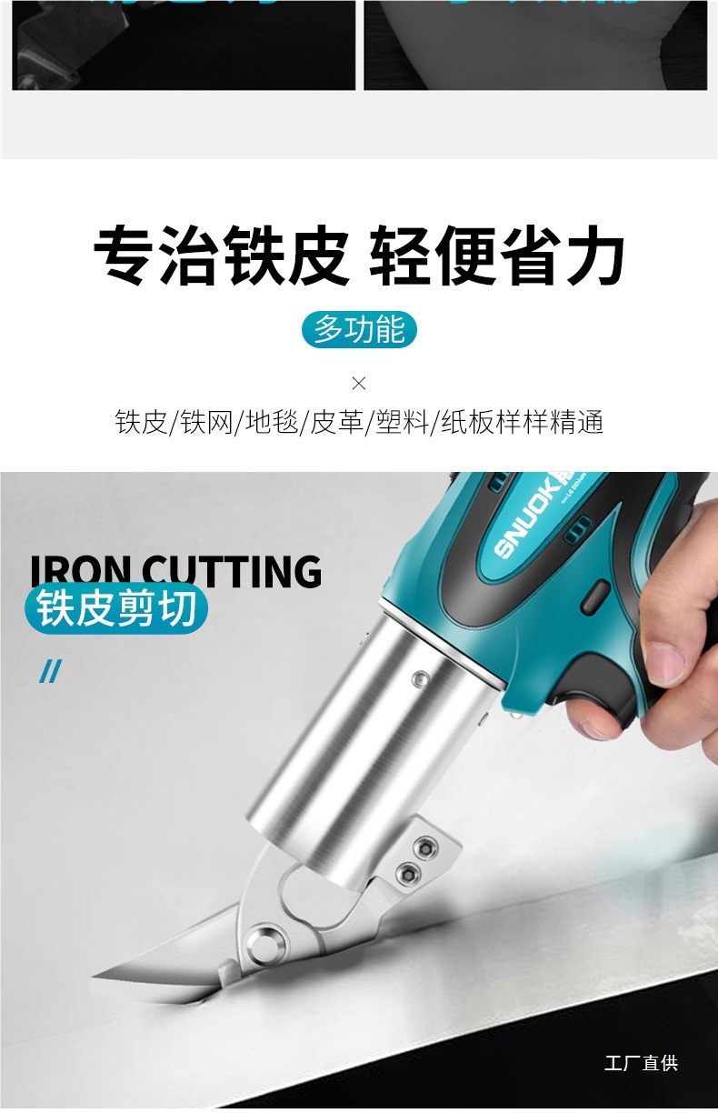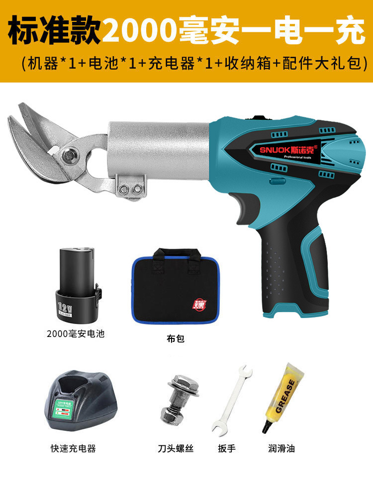 스누커 리튬 배터리 휴대용 전기 철판 가위 금속 얇은 판재 컬러 강철 타일 절단 천 충전 산업용 가위