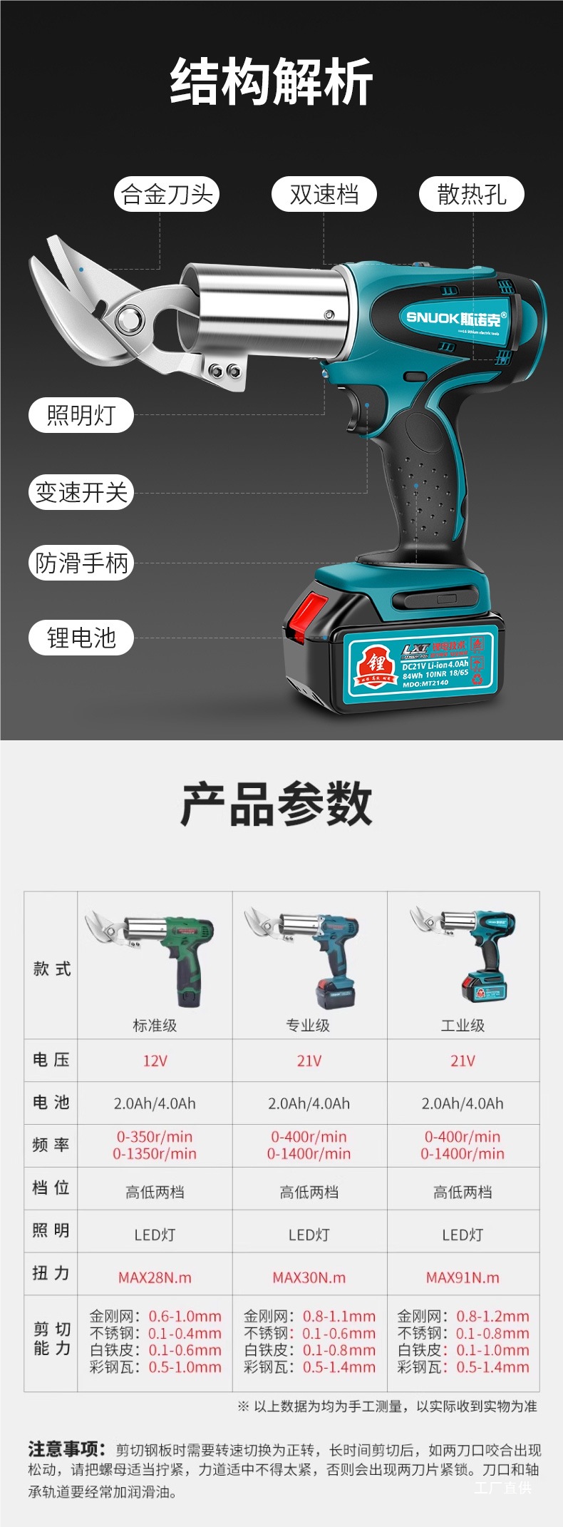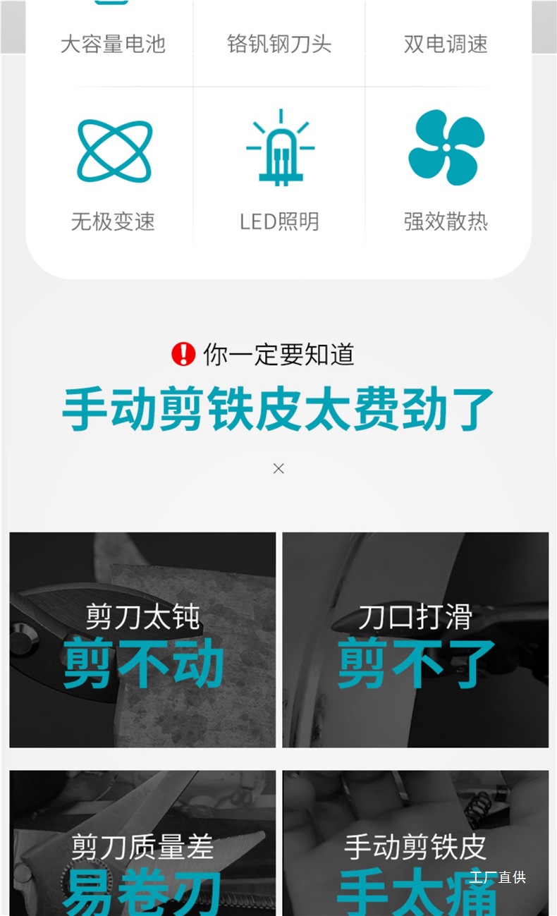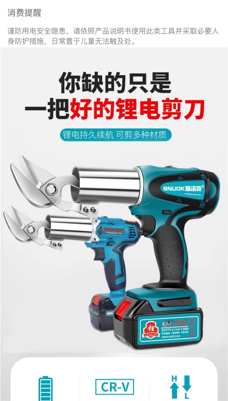 스누커 리튬 배터리 휴대용 전기 철판 가위 금속 얇은 판재 컬러 강철 타일 절단 천 충전 산업용 가위