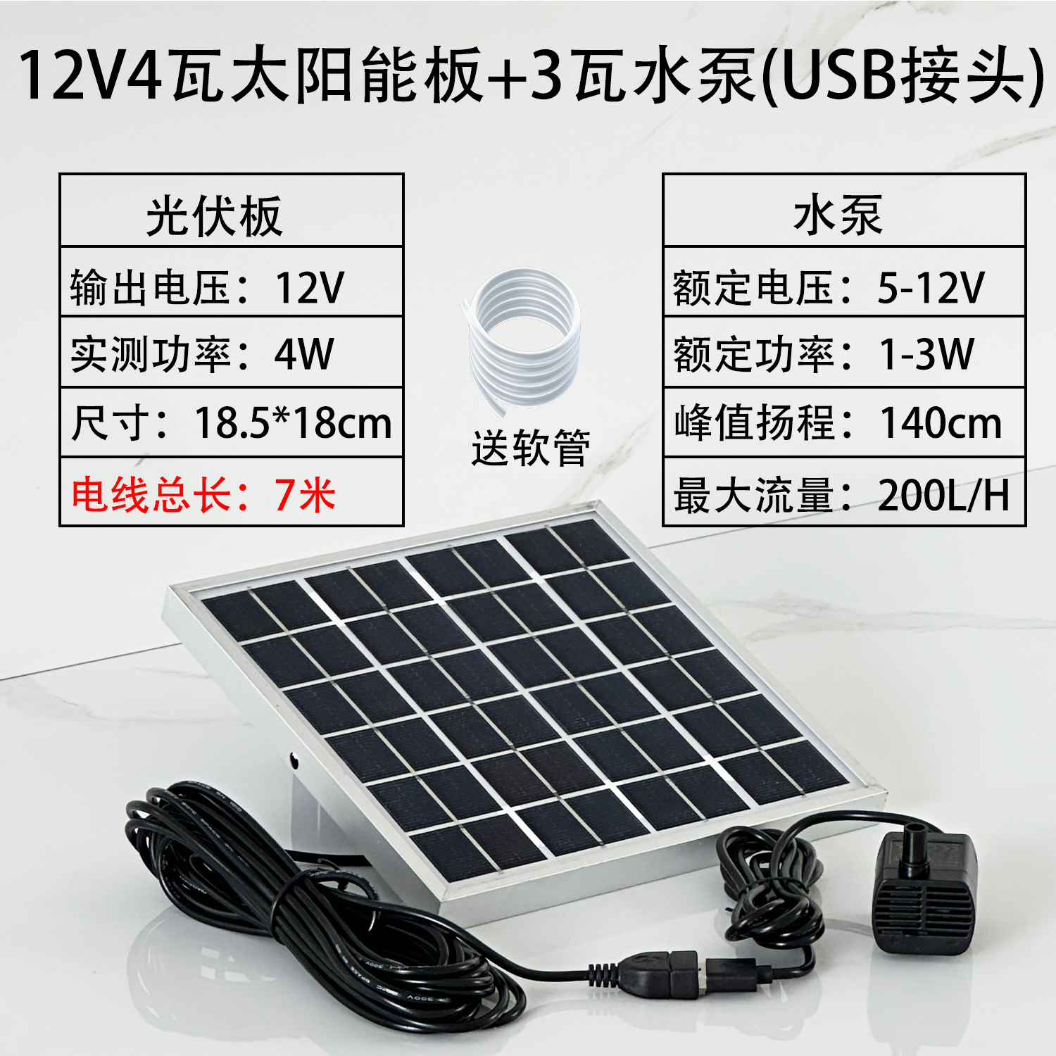 • ✷☽☽12V4 와트 보드 + 3와트 USB 워터 펌프 리프트 1.4m 와이어 길이 7.5m✷☽☽