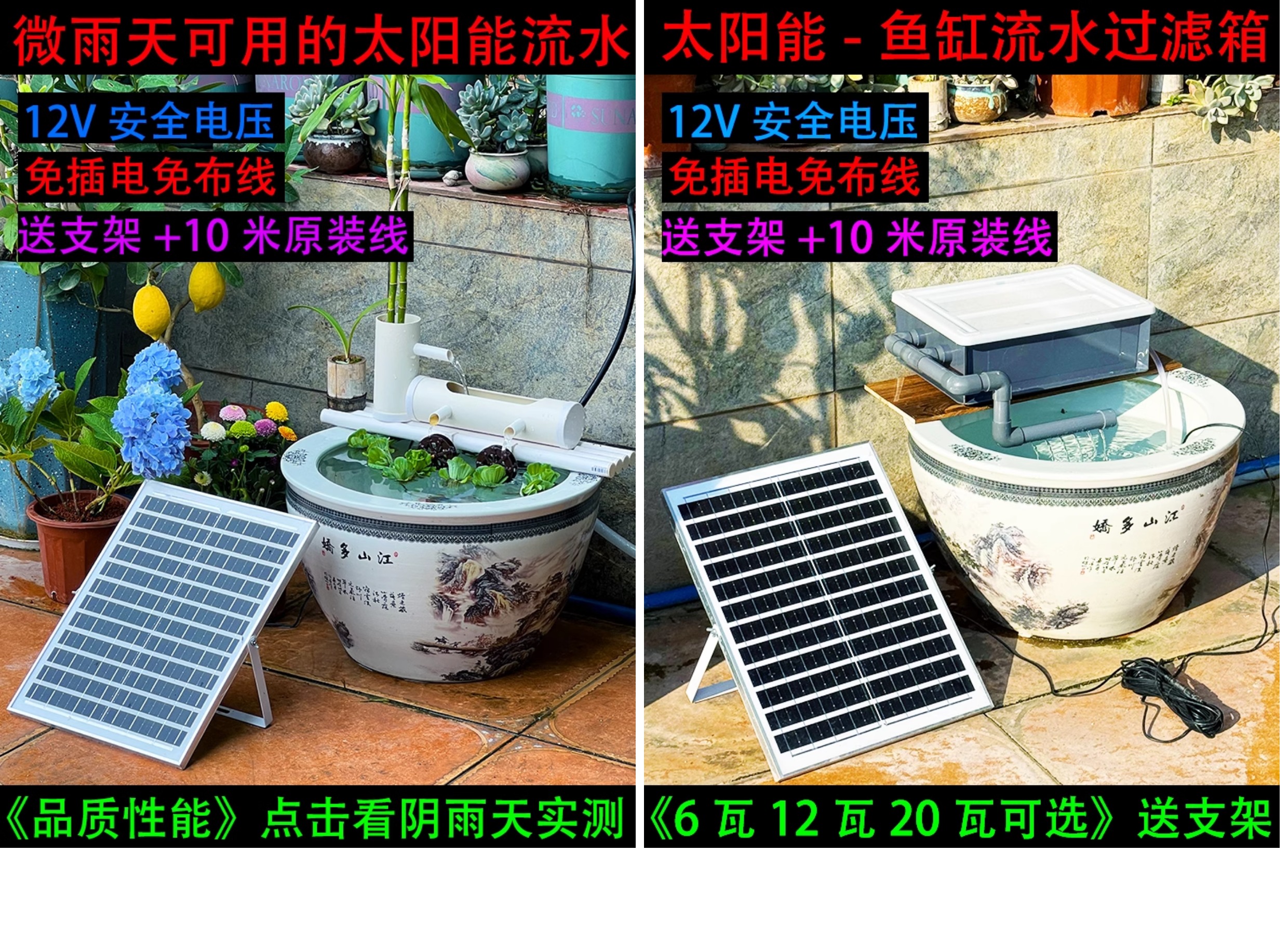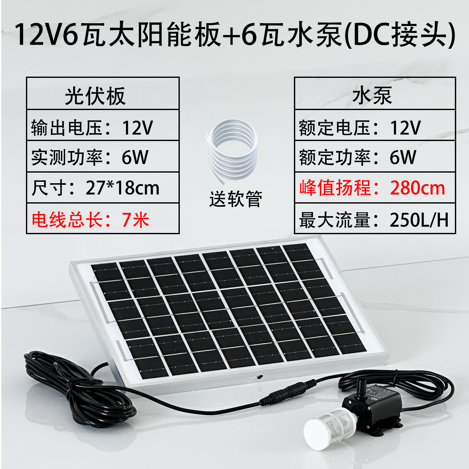 • ✷☽☽12V6 와트 패널 + 6 와트 DC 워터 펌프 헤드 2.8m 라인 길이 7.5m✷☽☽