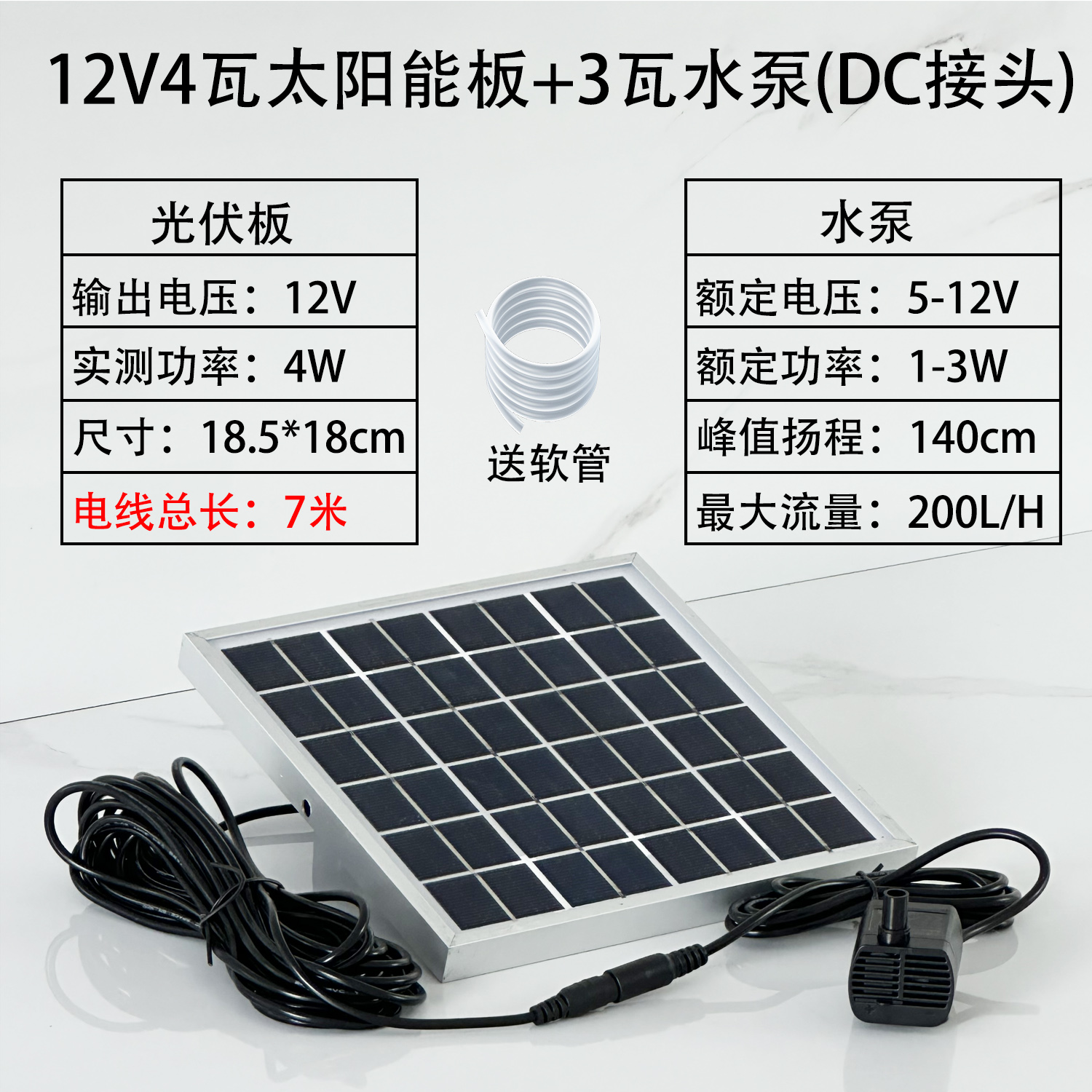 • ✷☽☽12V4 와트 패널 + 3와트 DC 워터 펌프 리프트 1.4m 와이어 길이 7.5m✷☽☽