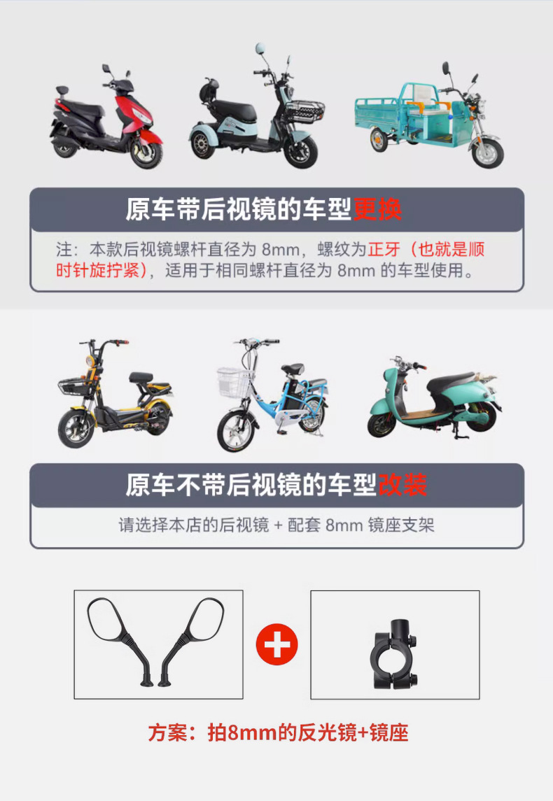 전기 자동차 백미러, 스쿠터 반사경, 범용 3륜 전기 자동차 볼록 Yadi Emma 반전 미러 Hong스토어 가기
