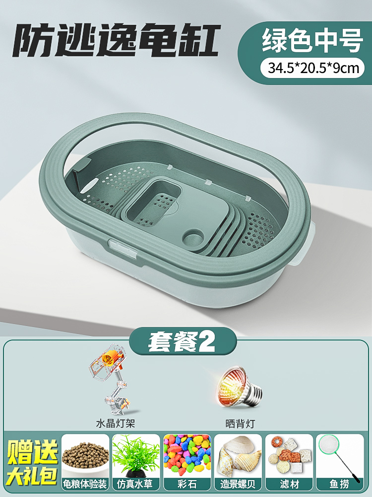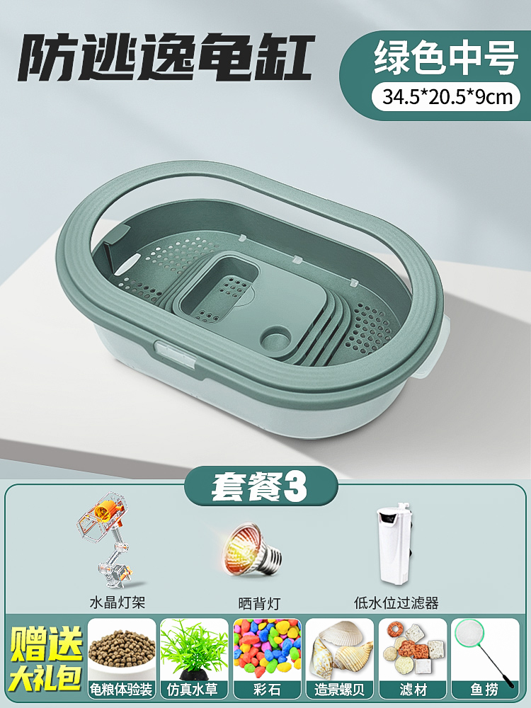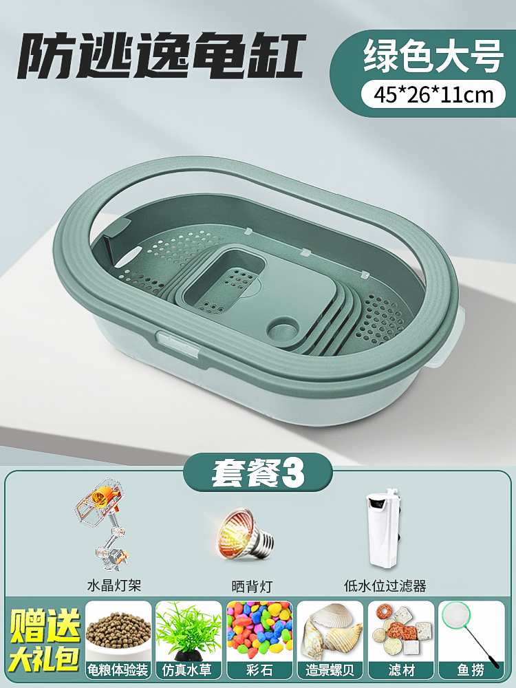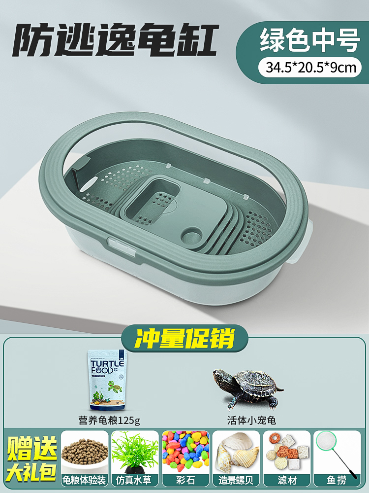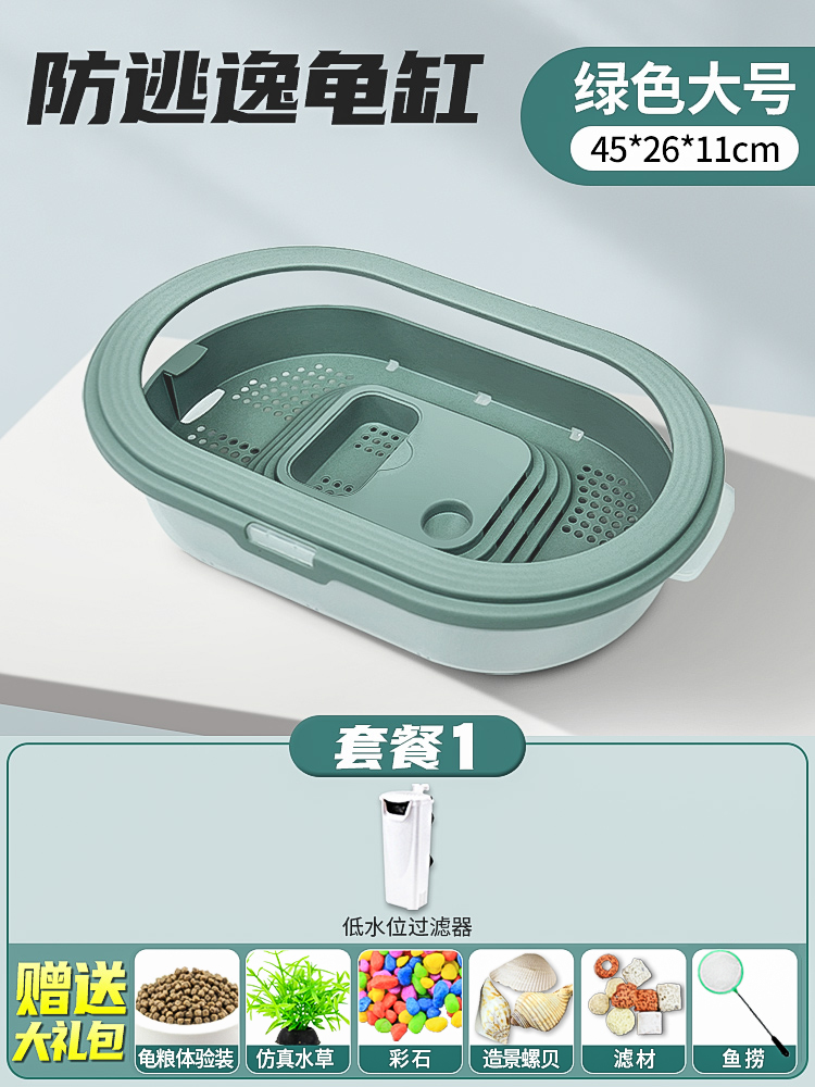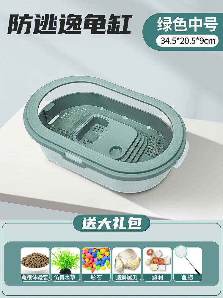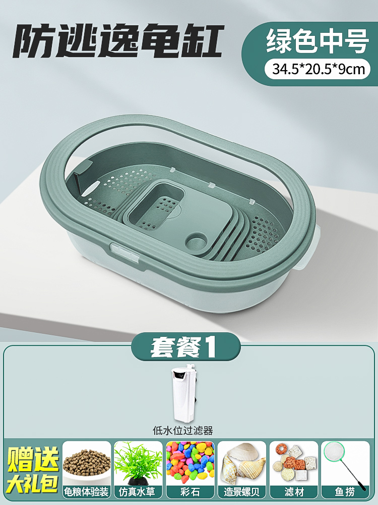 • 배수 거북이 분지 중간 녹색 + 필터 + 사육 선물 팩