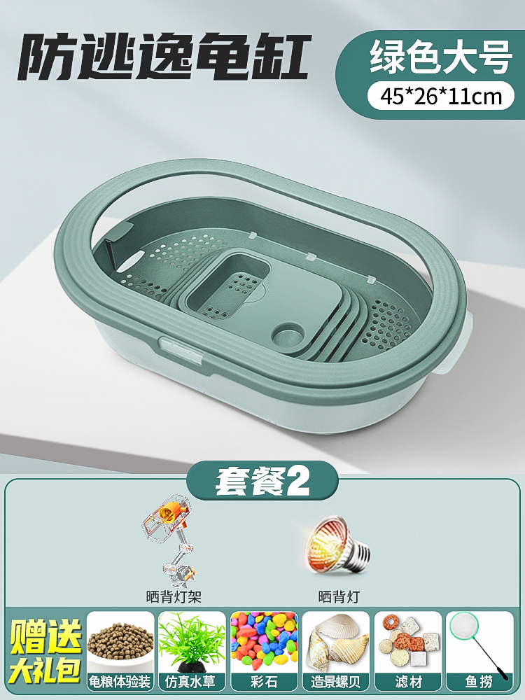 • 배수 거북이 대야 중간 녹색 + 햇볕을 쬐는 램프 + 사육 선물 팩