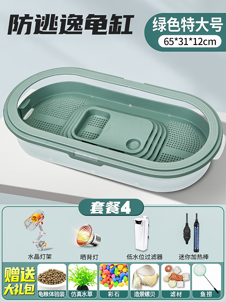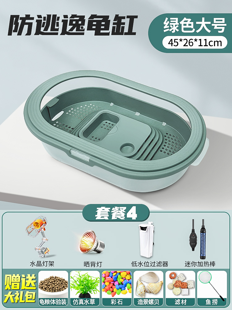 • 배수 거북이 대야 중간 녹색 + 필터 + 햇볕 + 가열 막대 + 사육 선물 팩