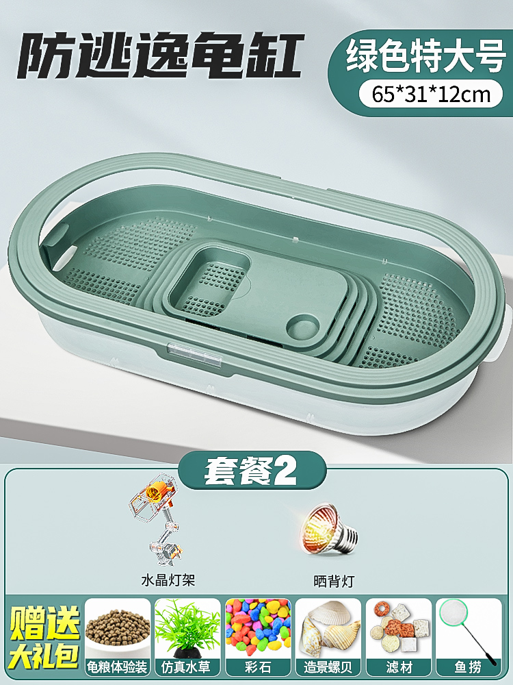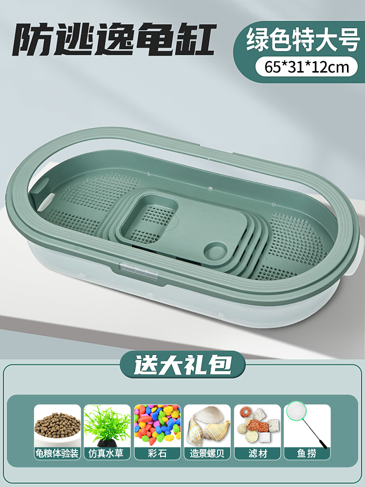 • 배수 거북이 분지 초대형 녹색 + 필터 + 사육 선물 팩