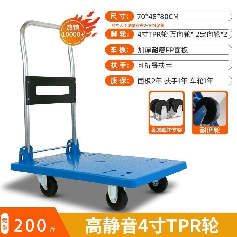 트롤리 플랫 트레일러 소형 트롤리 트롤리 접이식 휴대용 무음 트롤리 가정용 화물 운반 트롤리스토어 가기